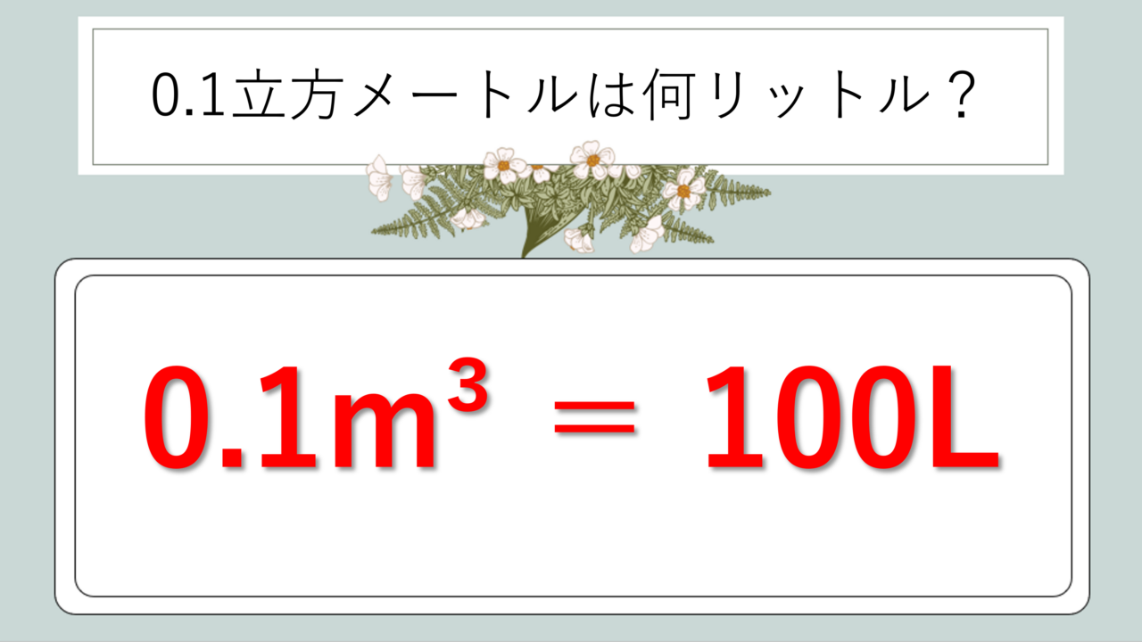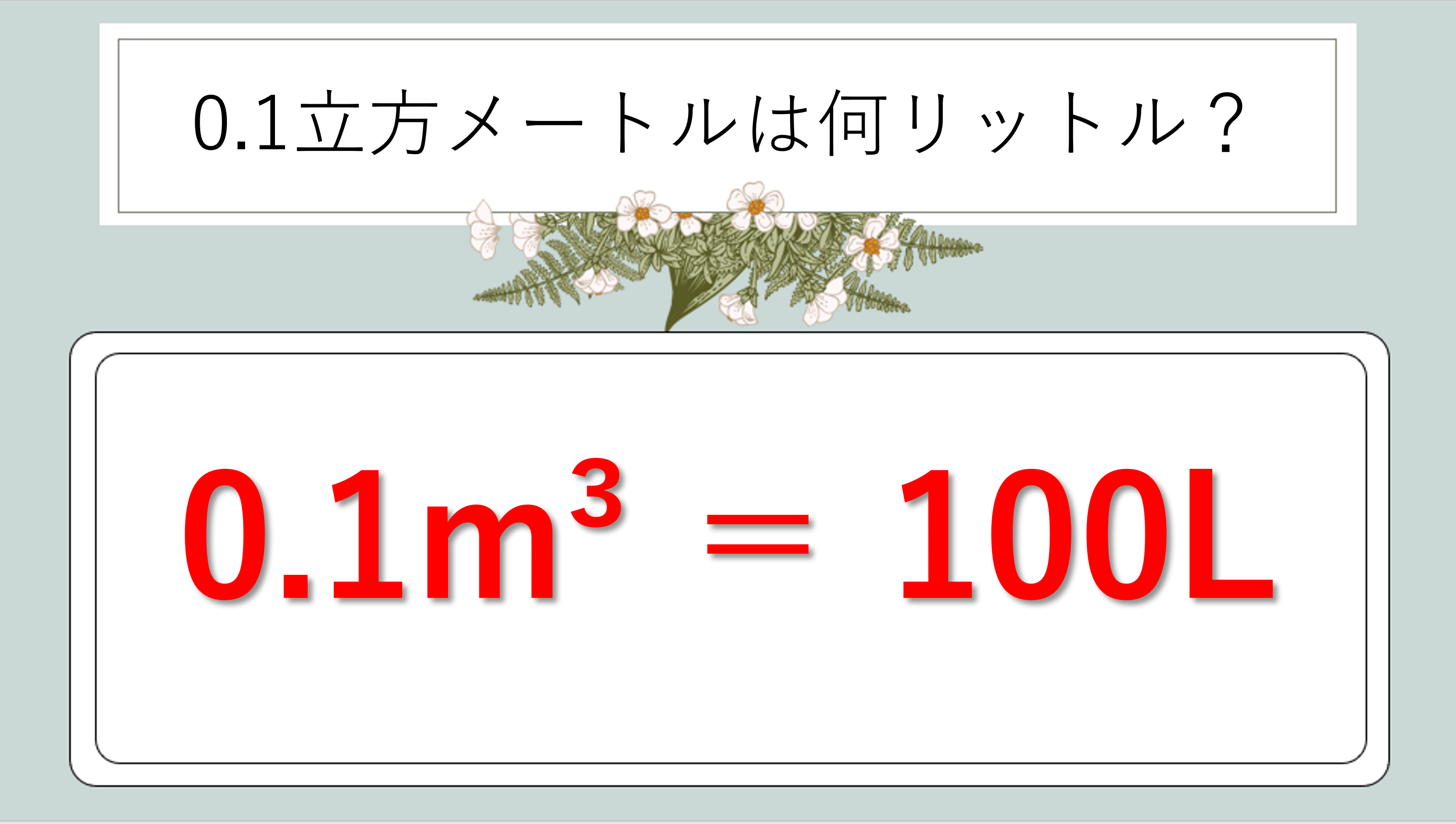 それではまず、0.1立方メートルが何リットルになるのかという結論から解説していきます。
