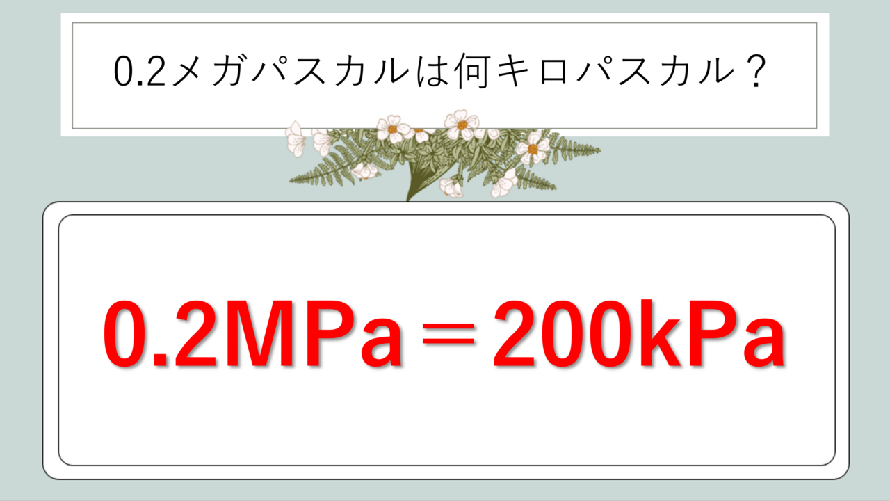 MPaとkPaの換算式で0.2MPa=200kPaを確認