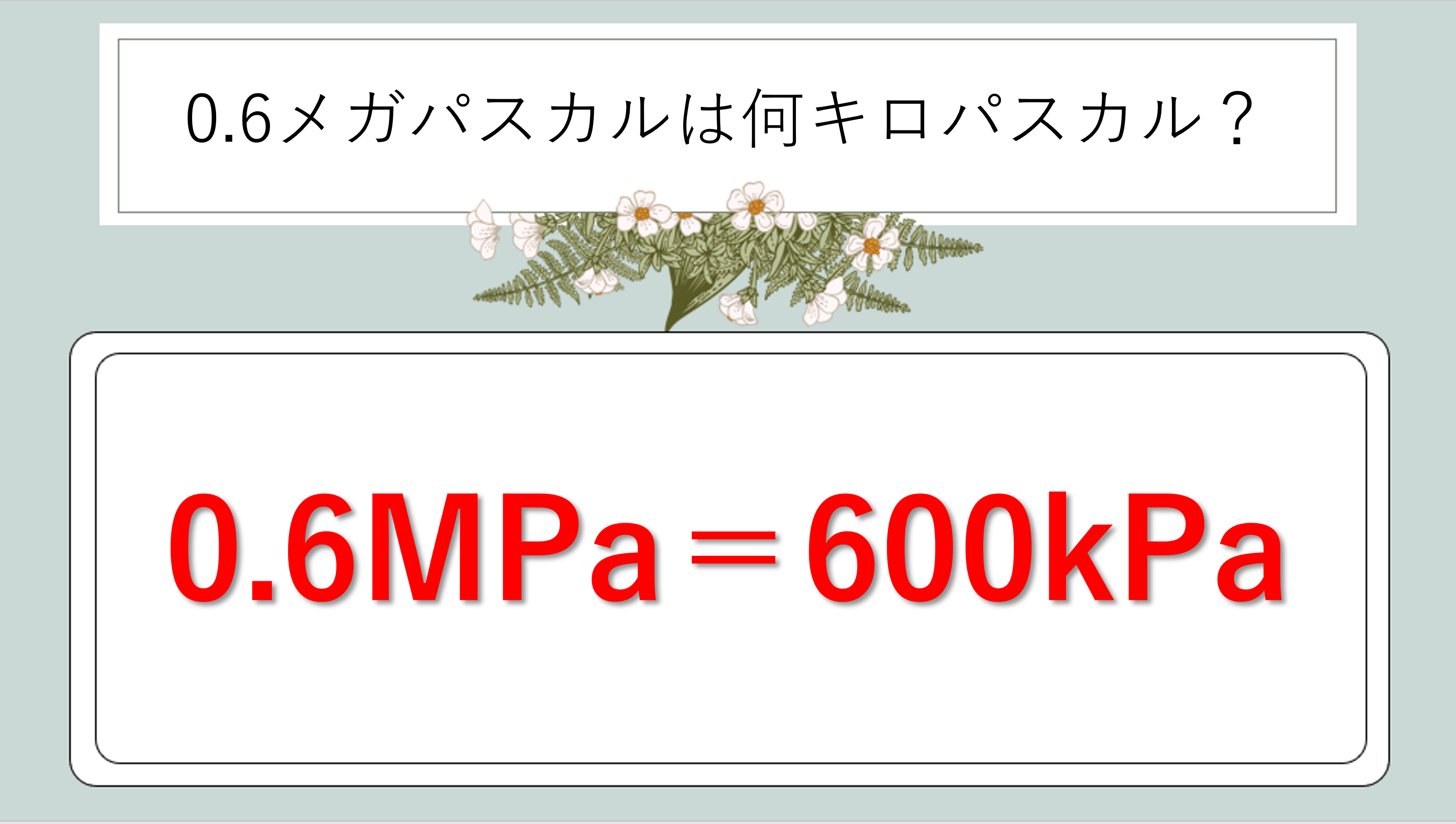 ∴ 0.6MPa = 600kPa = 600,000Pa(60万パスカル)