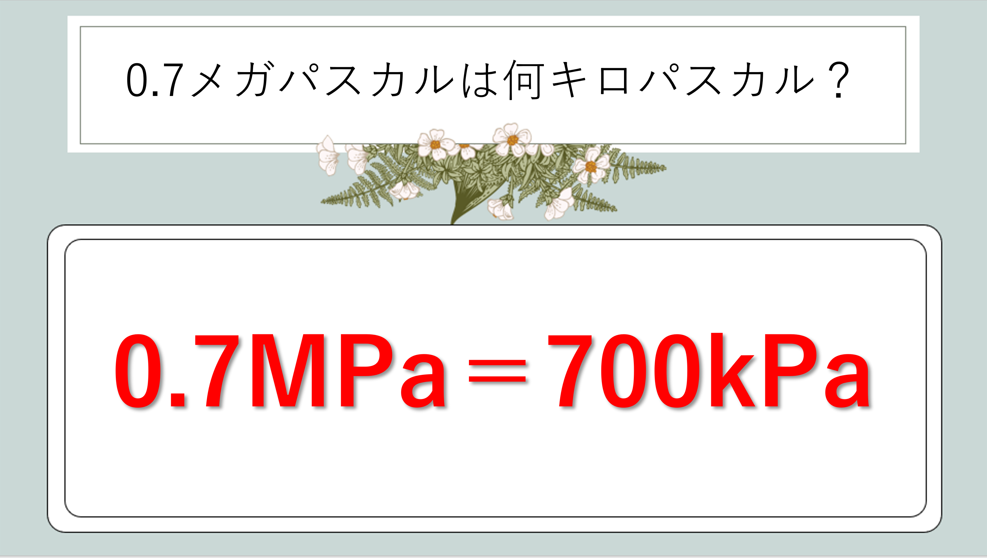∴ 0.7MPa = 700kPa = 700,000Pa(70万パスカル)