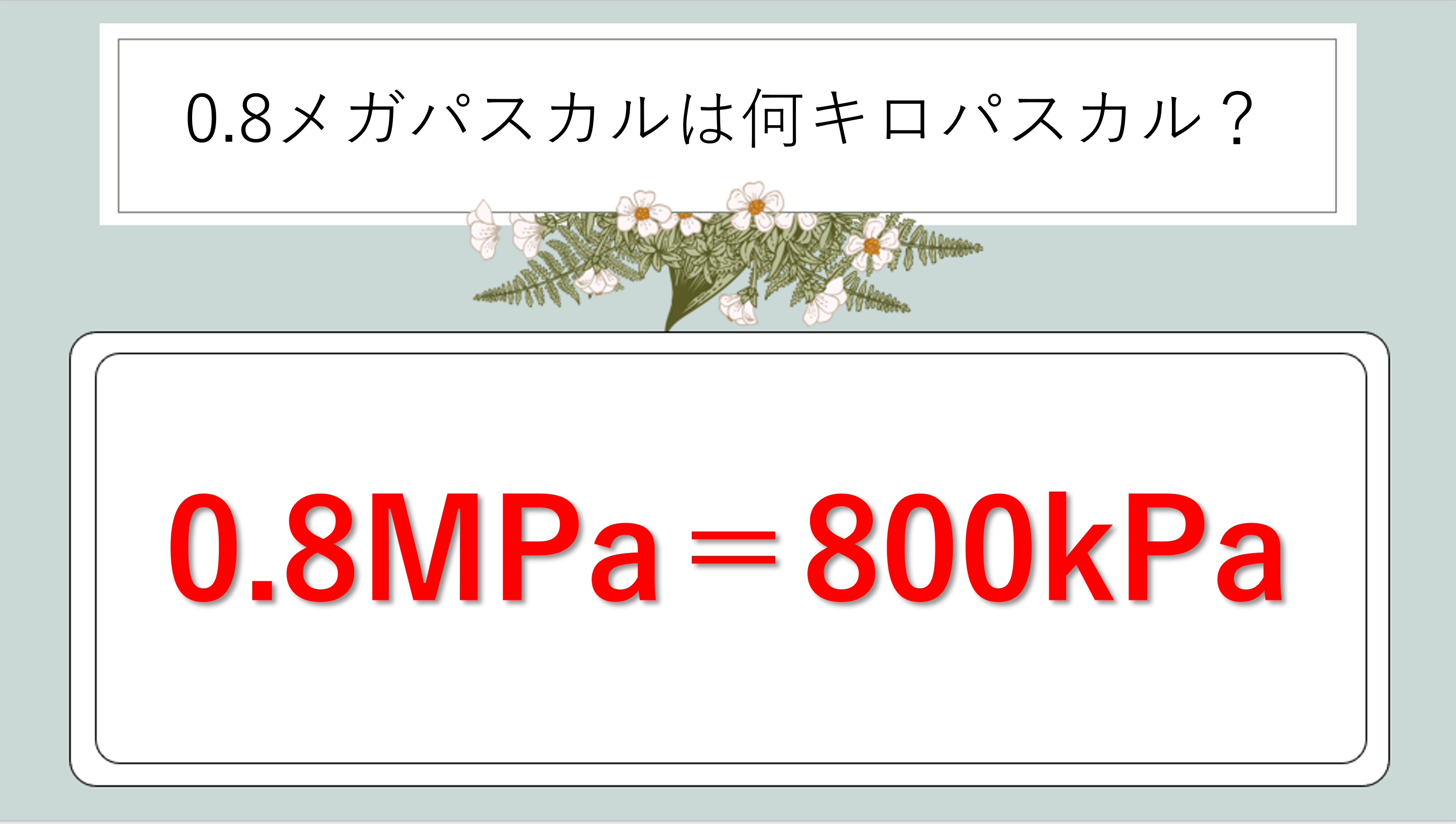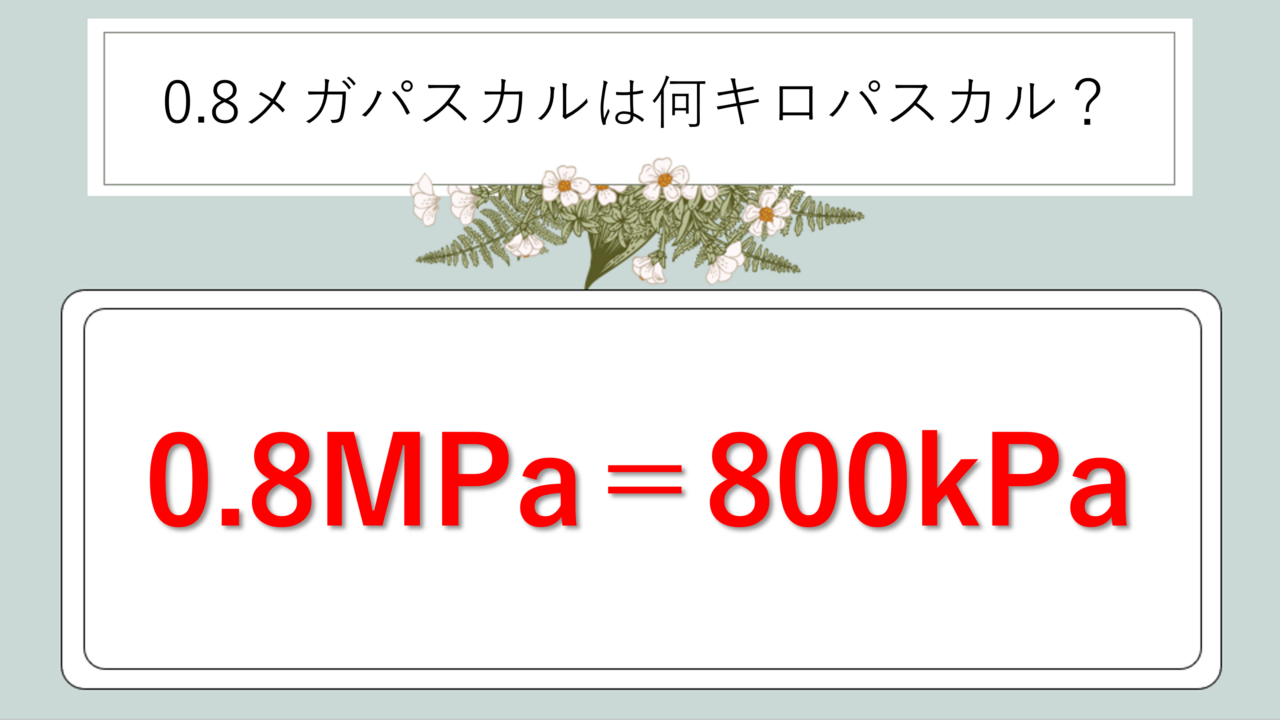 ∴ 0.8MPa = 800kPa = 800,000Pa(80万パスカル)