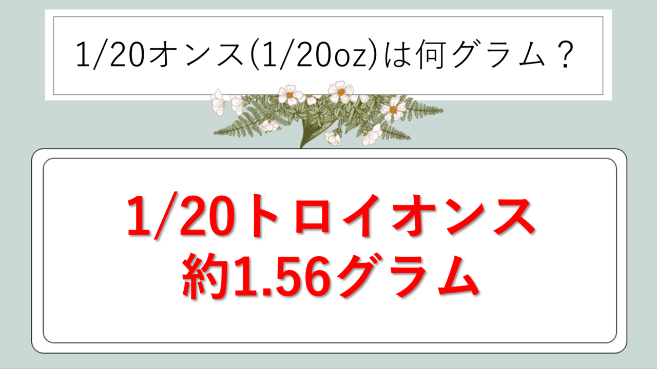 それではまず、1/20オンスが何グラムに相当するかについて解説していきます。