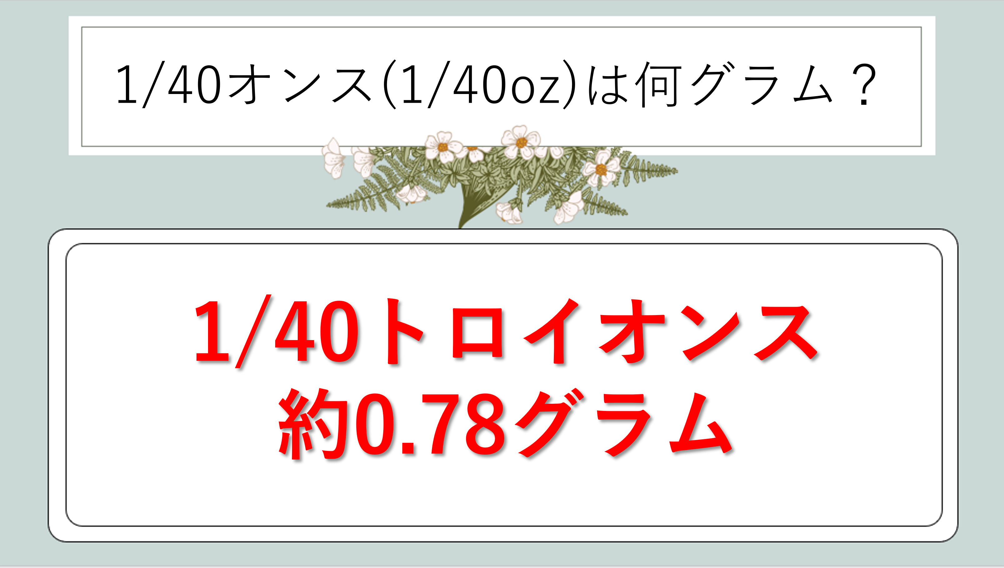 それではまず、1/40オンスが何グラムに相当するかについて解説していきます。