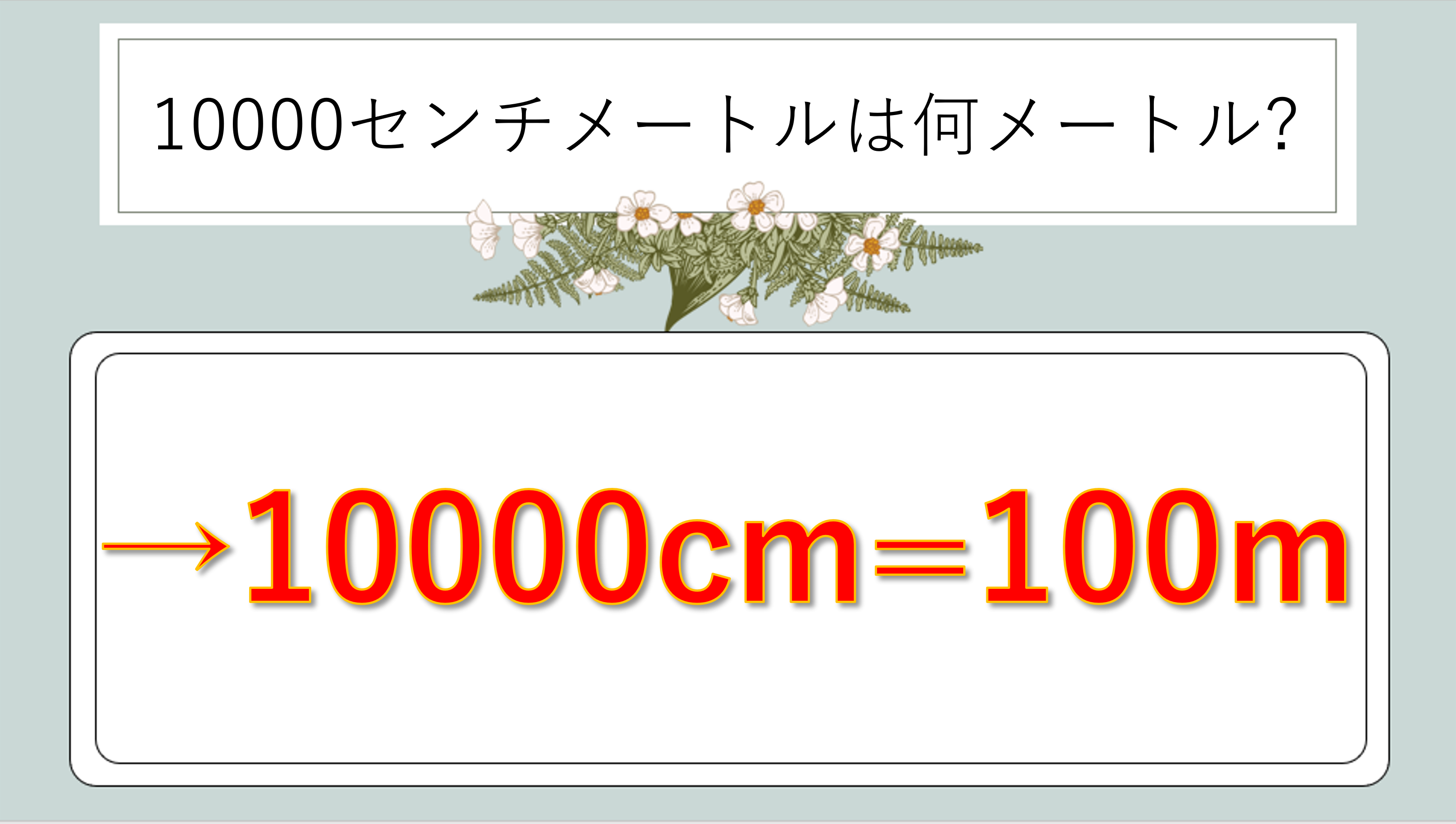10000センチは何メートル?答えは100メートルです