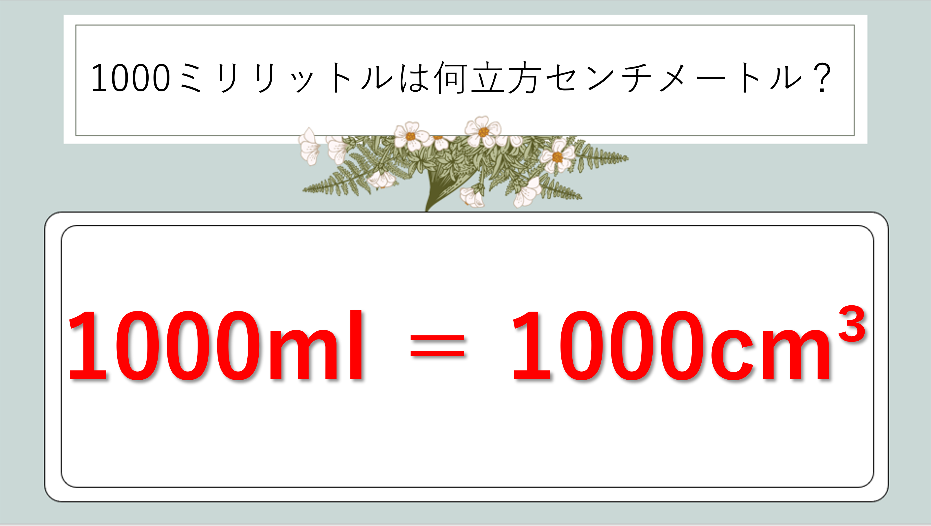 それではまず、1000ミリリットルは何立方センチメートルになるのかという結論から解説していきます。