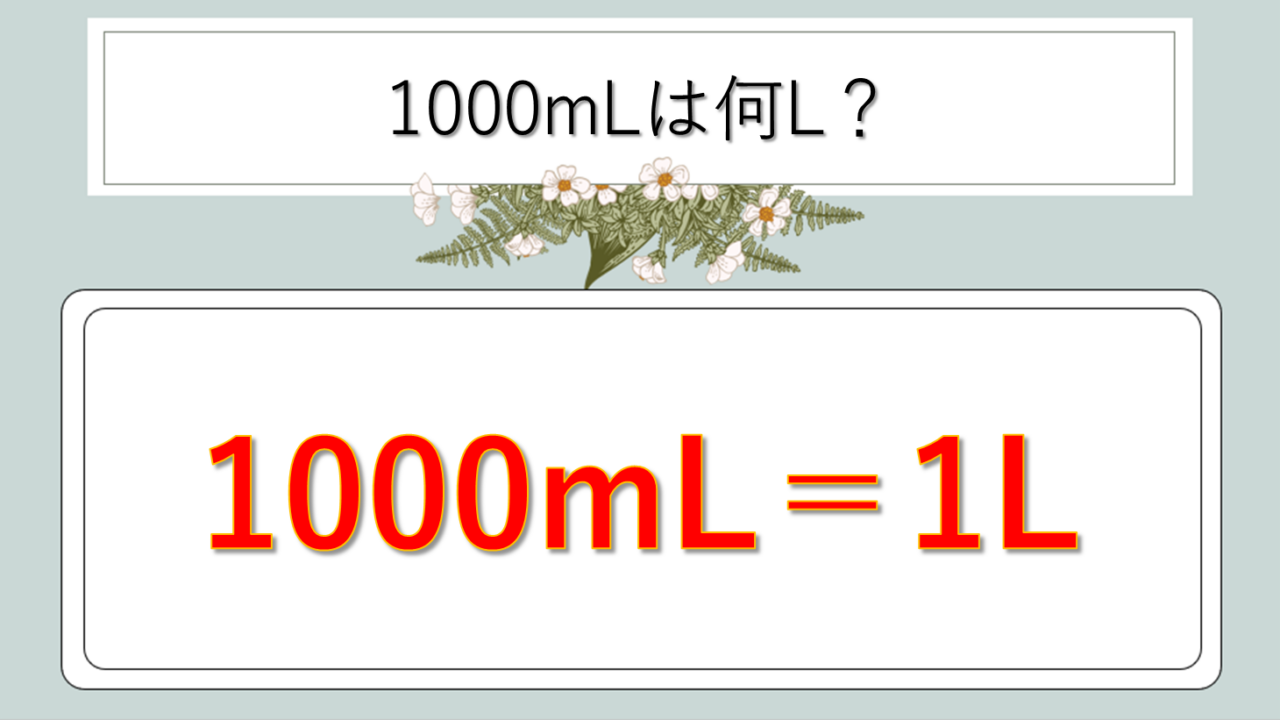1000ミリリットルは1リットル(1000ml=1L)が答え