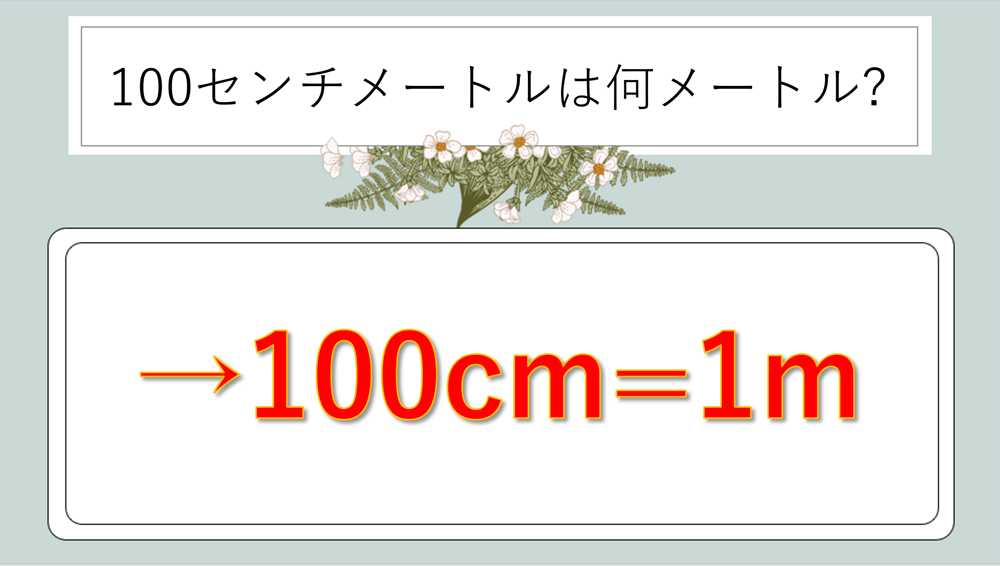 それではまず、100センチメートルが何メートルになるのか、結論からお伝えしていきます。
