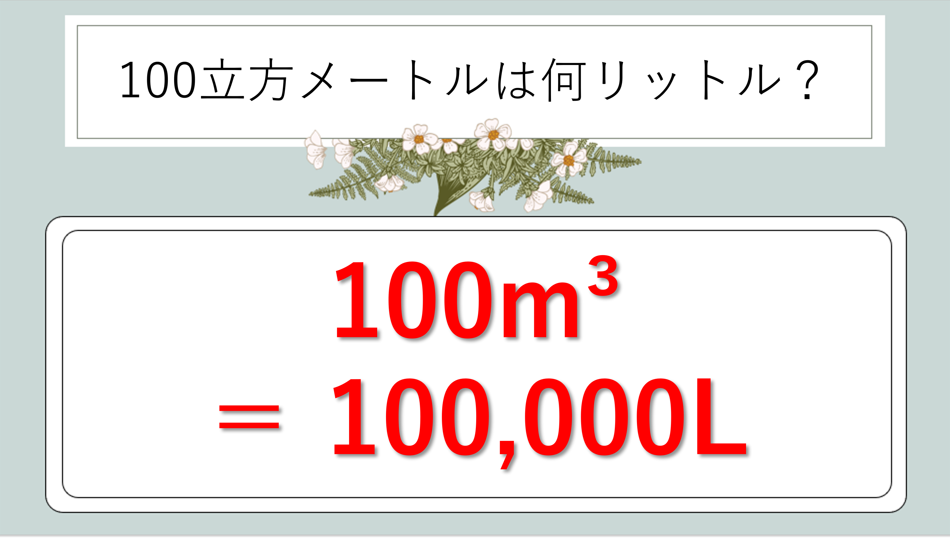 「100立方メートルって、リットルに換算するといくつになるの?」と感じたことはありませんか?