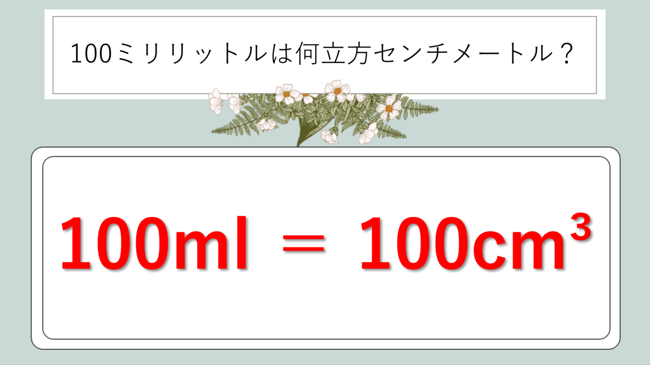 それではまず、100ミリリットルは何立方センチメートルになるのかという結論から解説していきます。