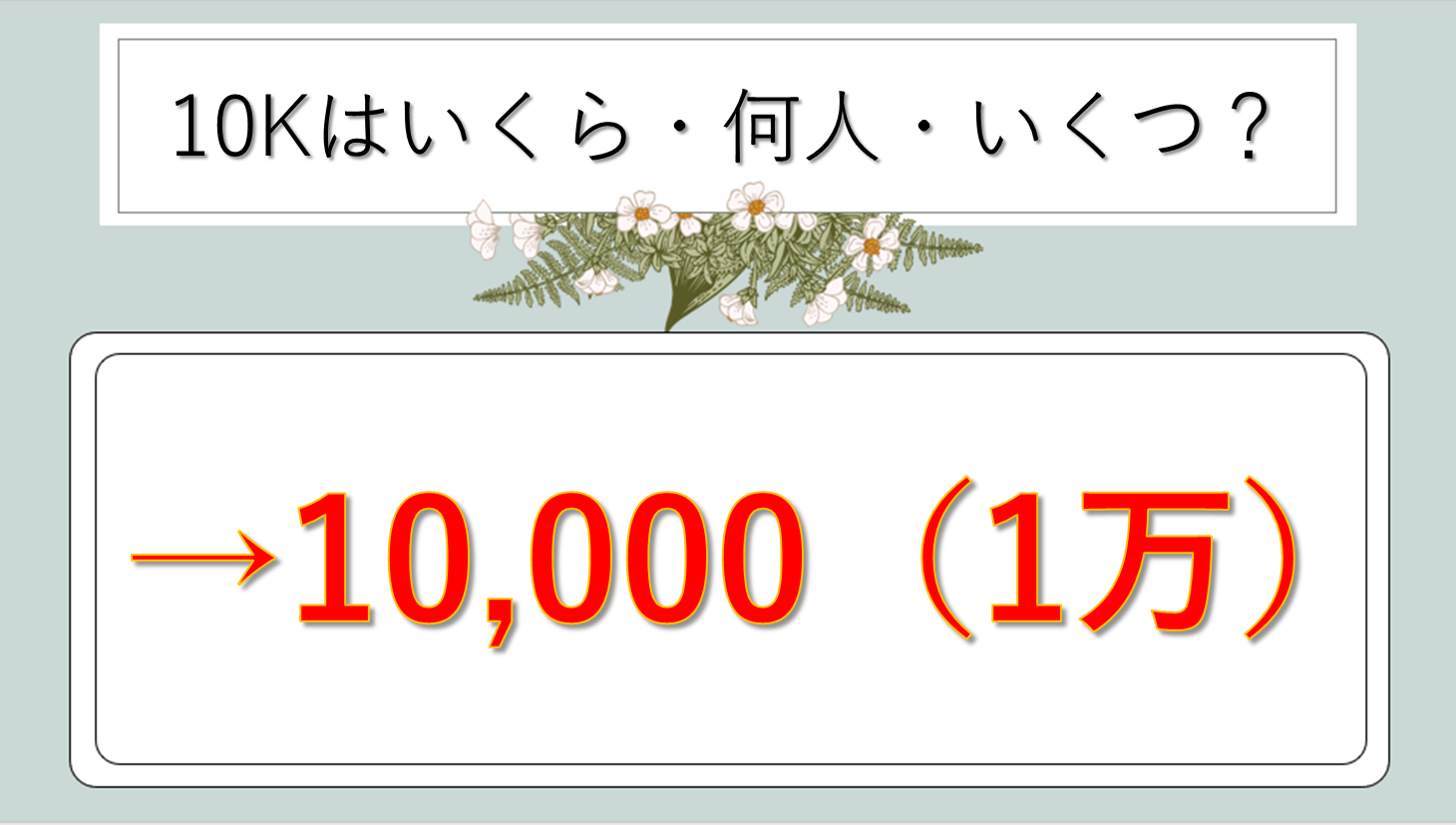 まとめ 10kは何人でいくつで何円(お金や数や金額:ドルも:tiktokやインスタのフォロワー等)