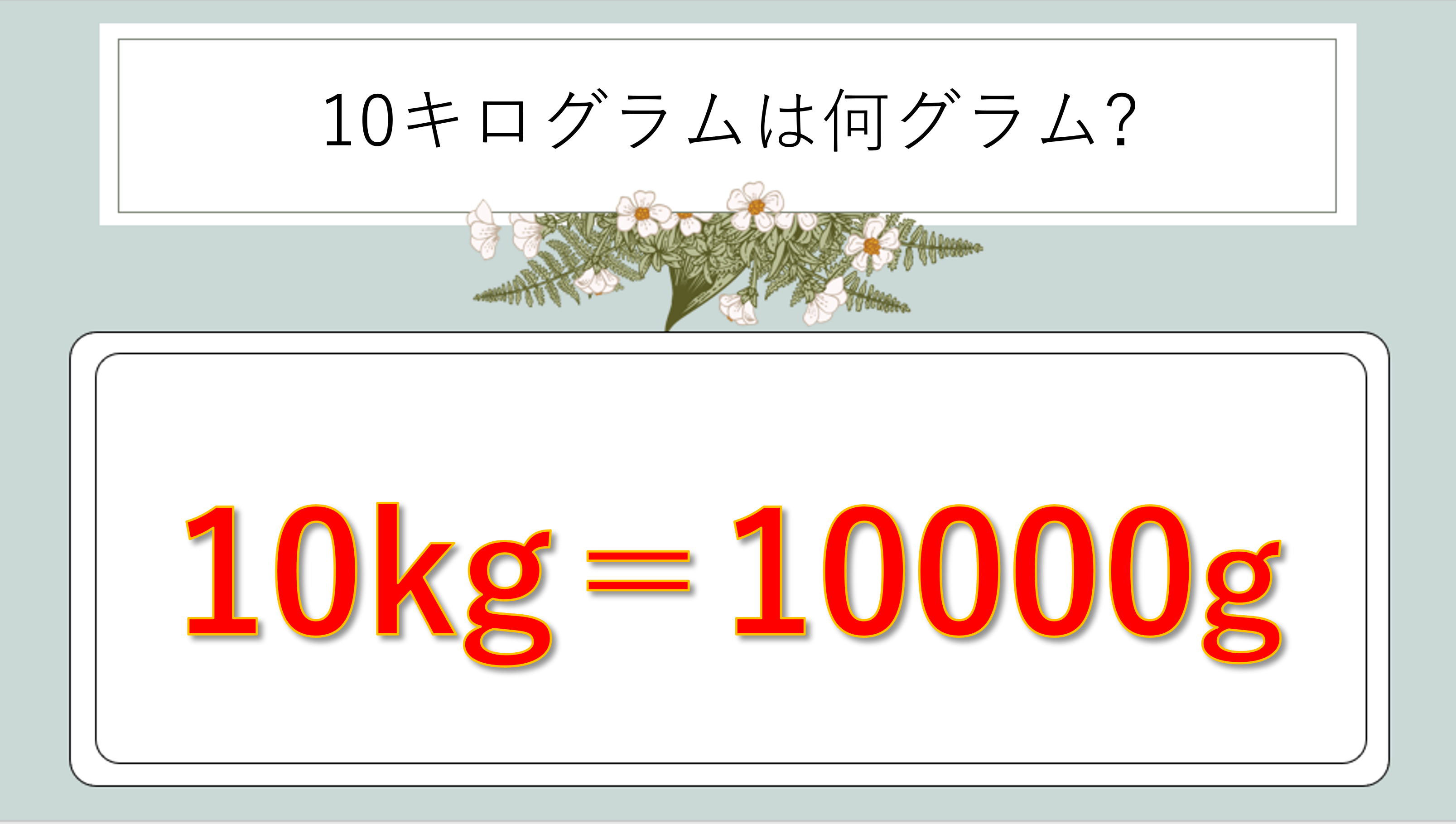 10キログラムをグラムに換算する場合は、次のように計算するのです。