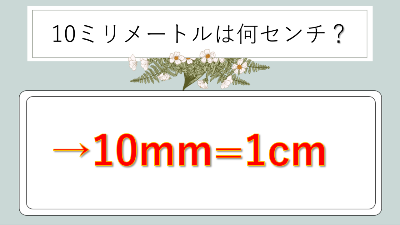 10mmは1cmの基本単位となる関係ですから、この換算は特に重要です。