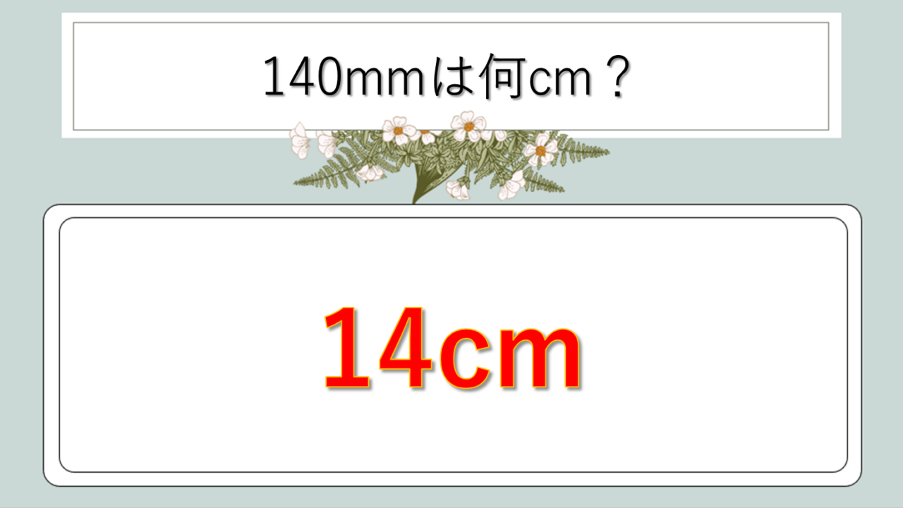 つまり、ミリメートルで表された数値を10で割ることで、センチメートルの値が求められるわけです。この方法は140mmに限らず、あらゆるミリメートルの数値に適用できます。