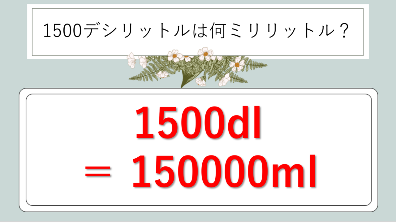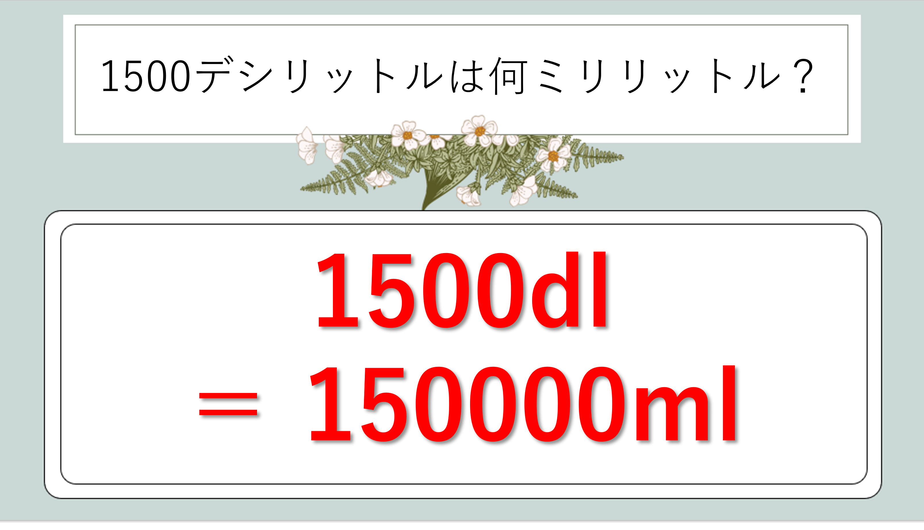 1500dl=150000ml、ぜひしっかり覚えておいてくださいね!