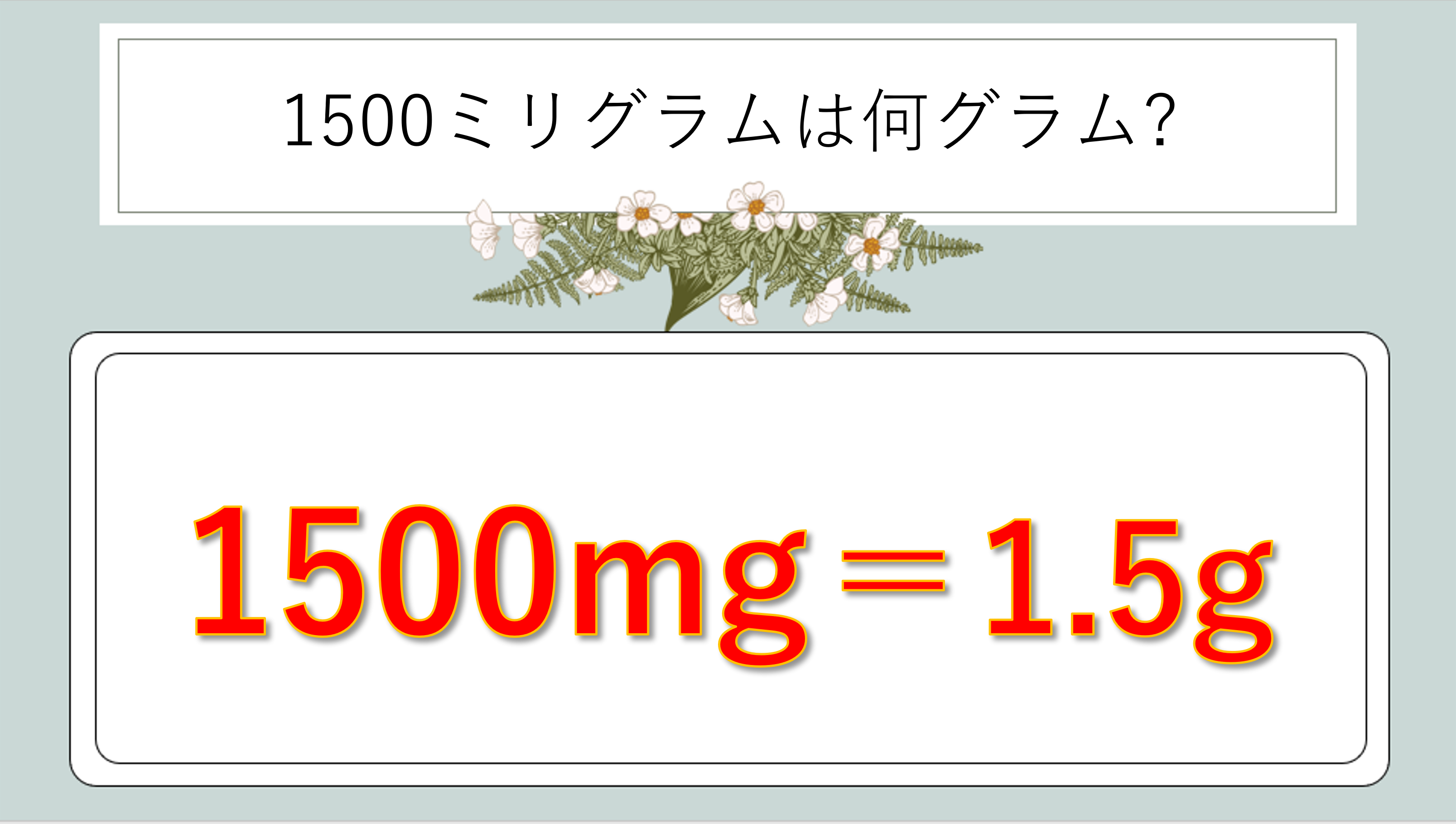 | 1500mgは何gか | 1.5g | 1500÷1000 |