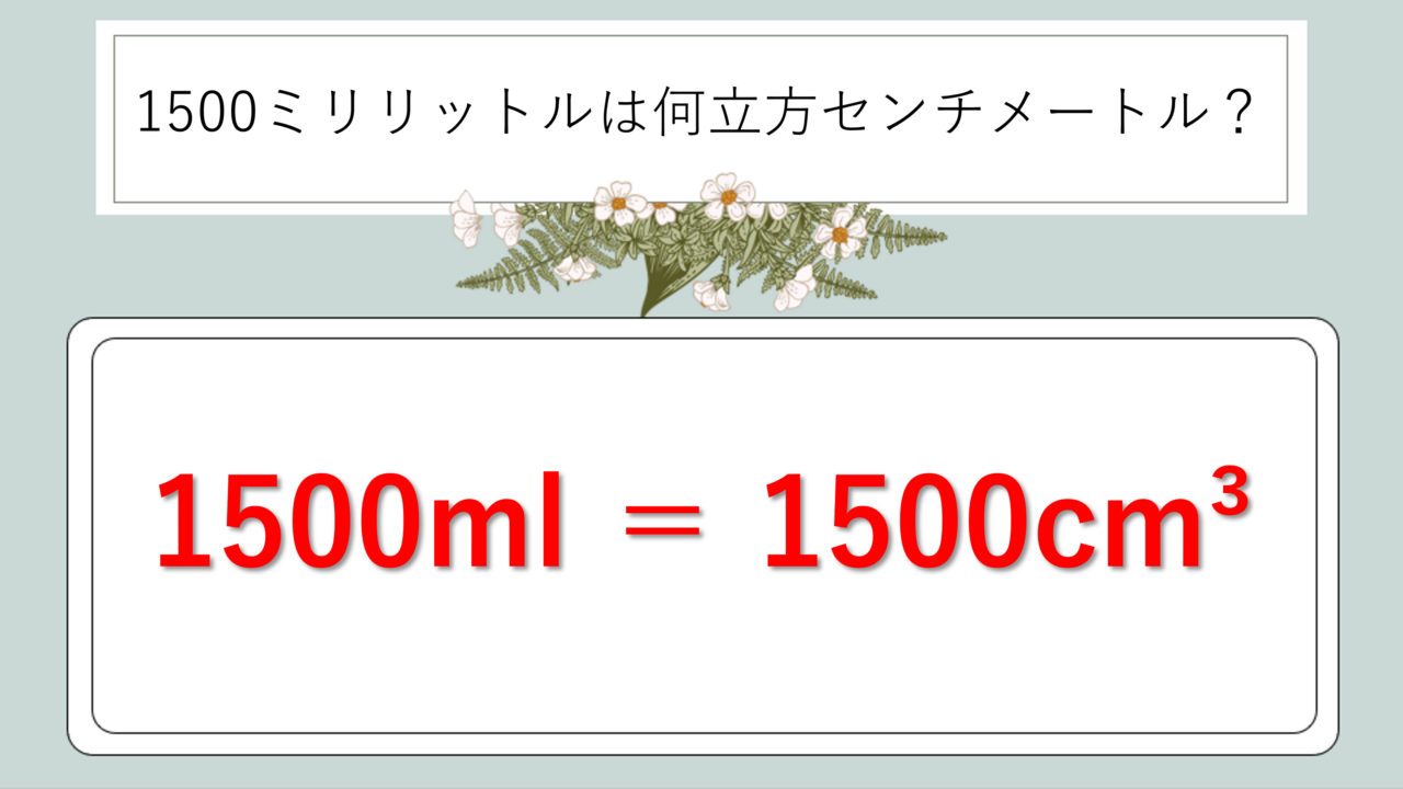 それではまず、1500ミリリットルは何立方センチメートルになるのかという結論から解説していきます。