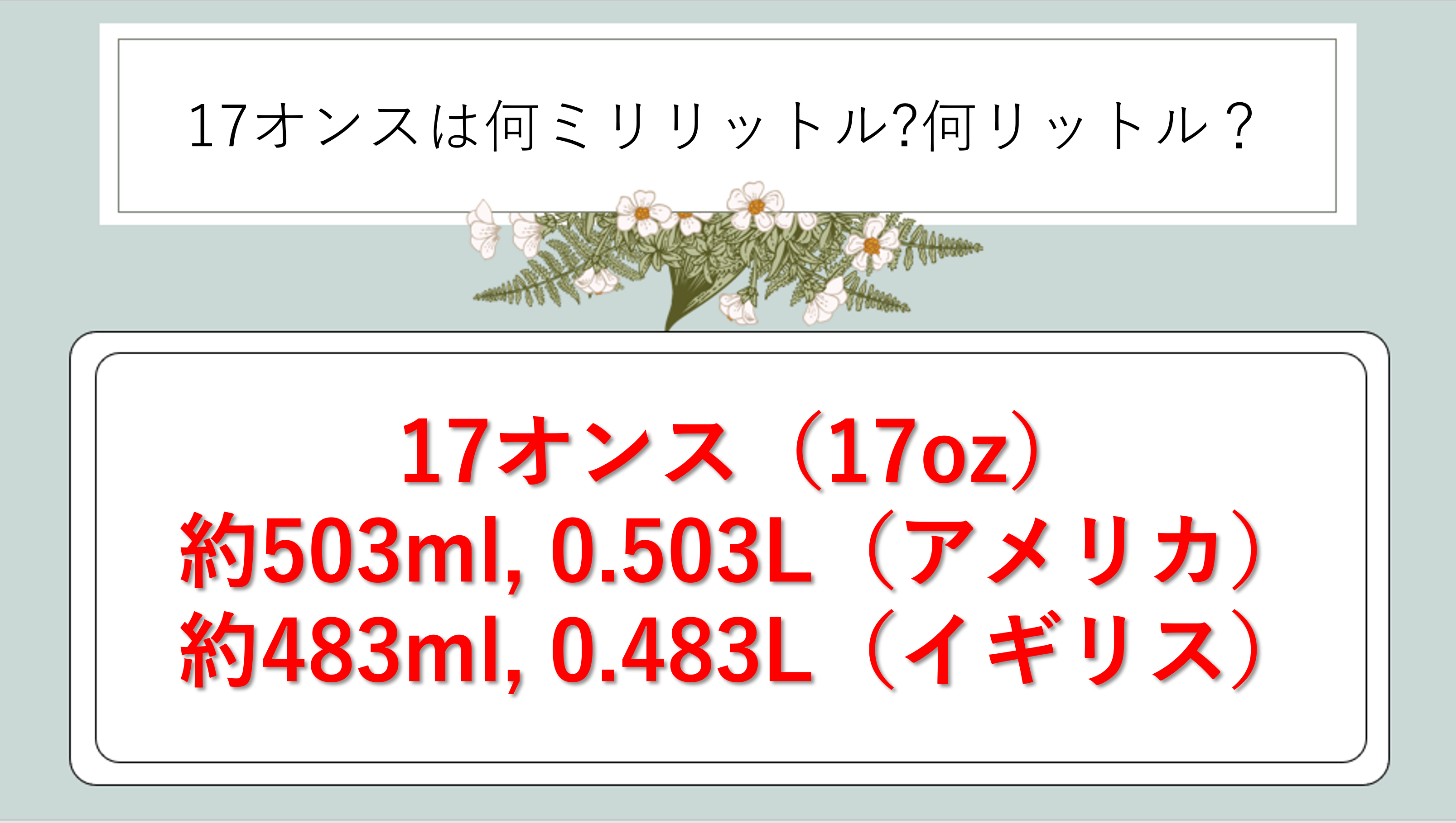 続いては、アメリカ基準での17オンスの換算方法を確認していきます。