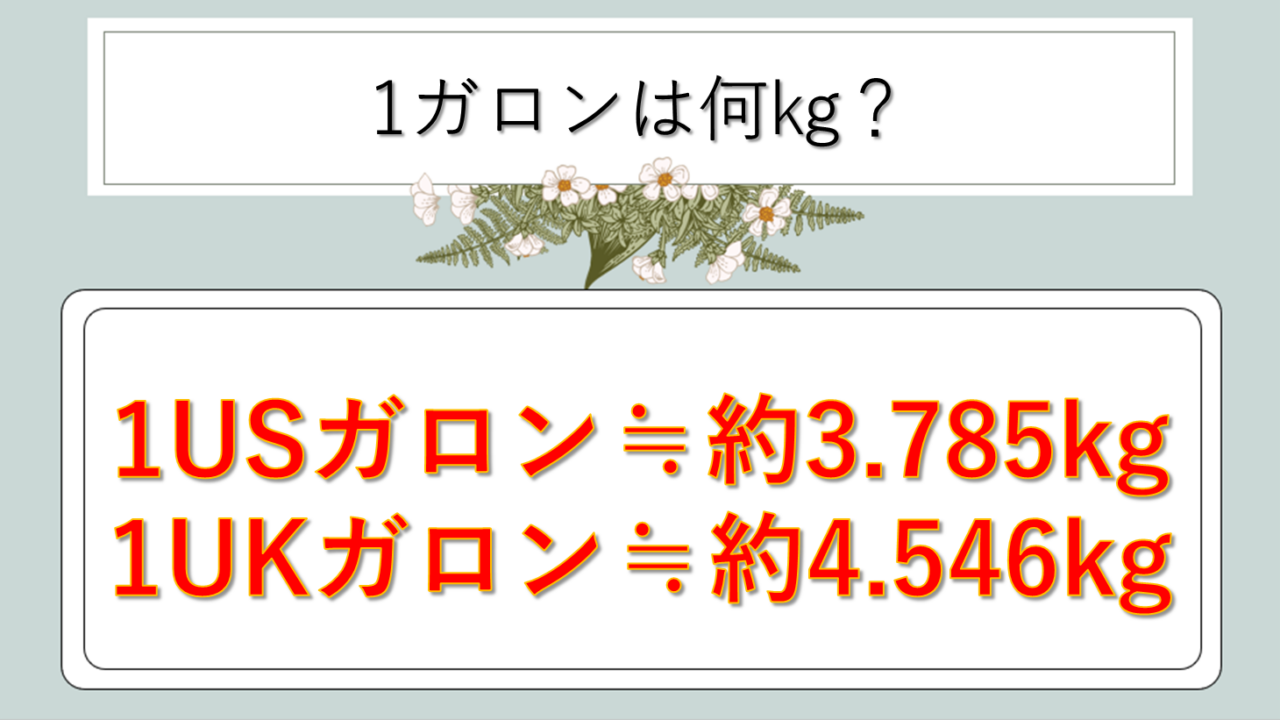 それではまず、1ガロンは何キロになるのかという核心から解説していきます。