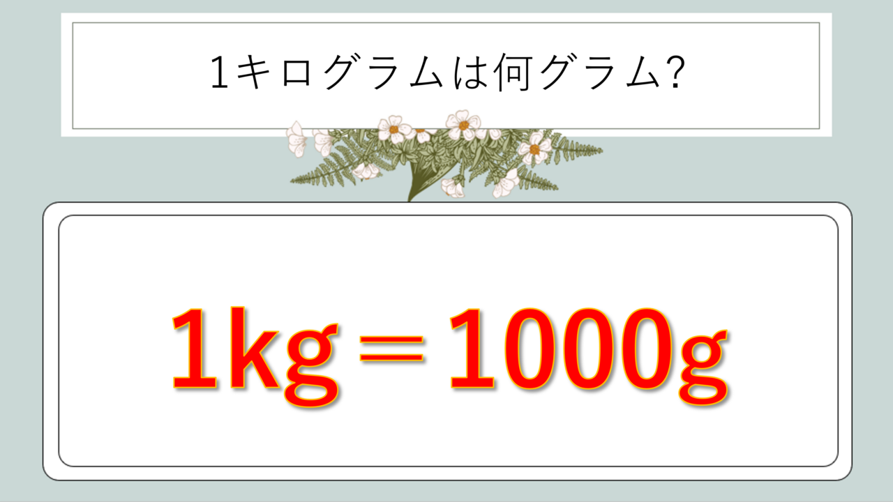 1キログラムをグラムに換算する場合は、次のように計算するのです。