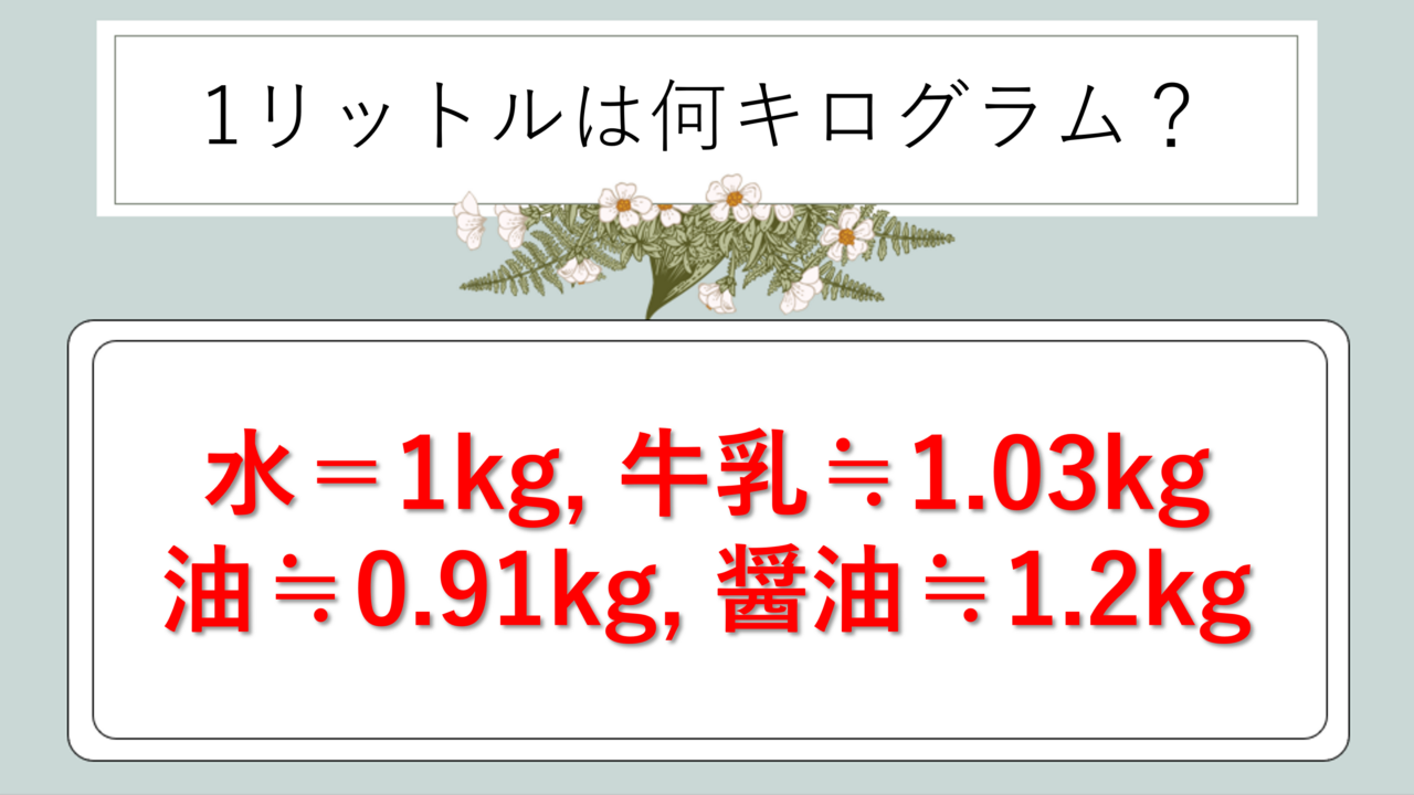 キログラムからリットルへの逆換算も覚えておこう