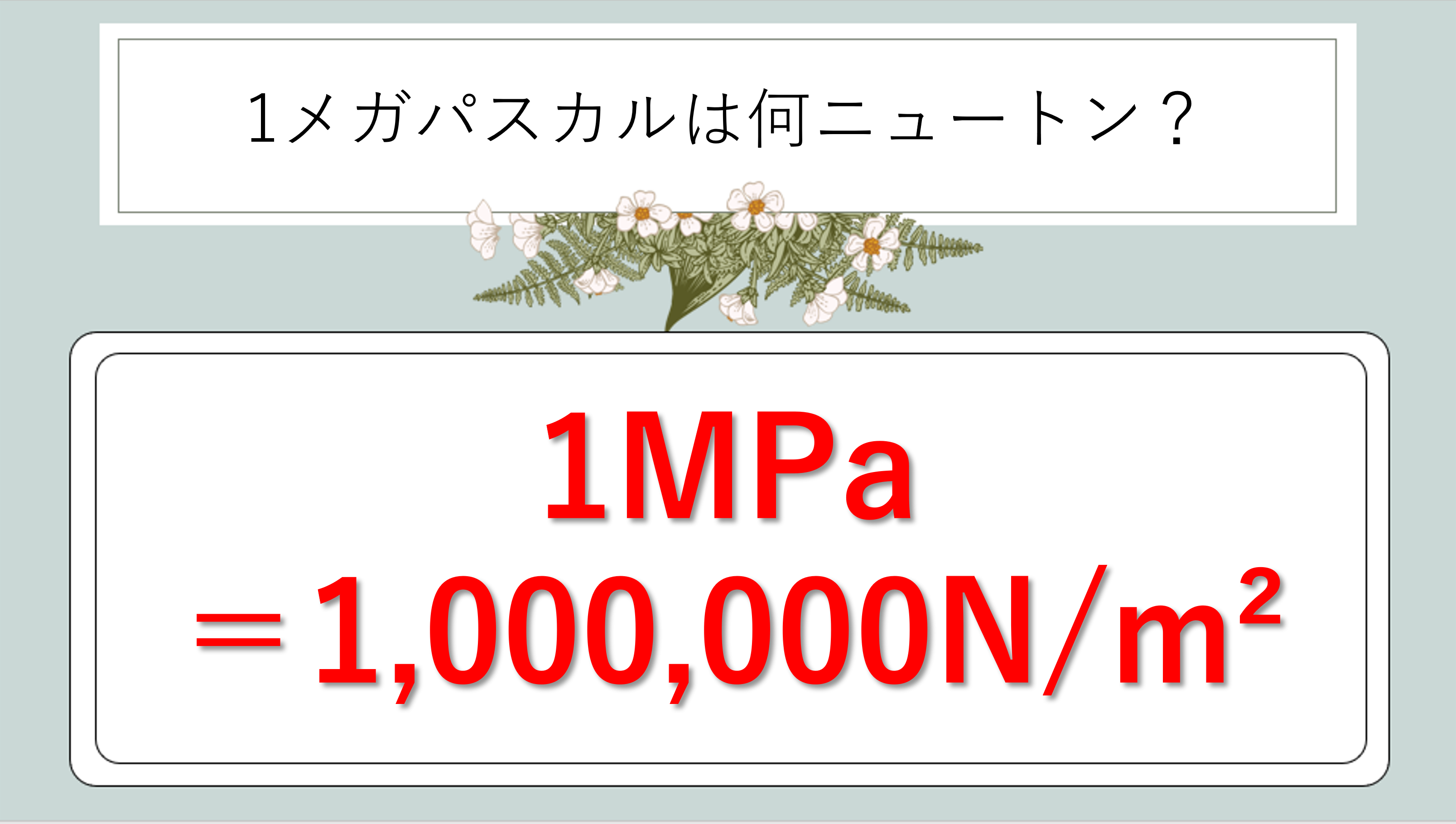 ∴ 1MPa = 1,000,000N/m²(百万ニュートン毎平方メートル)
