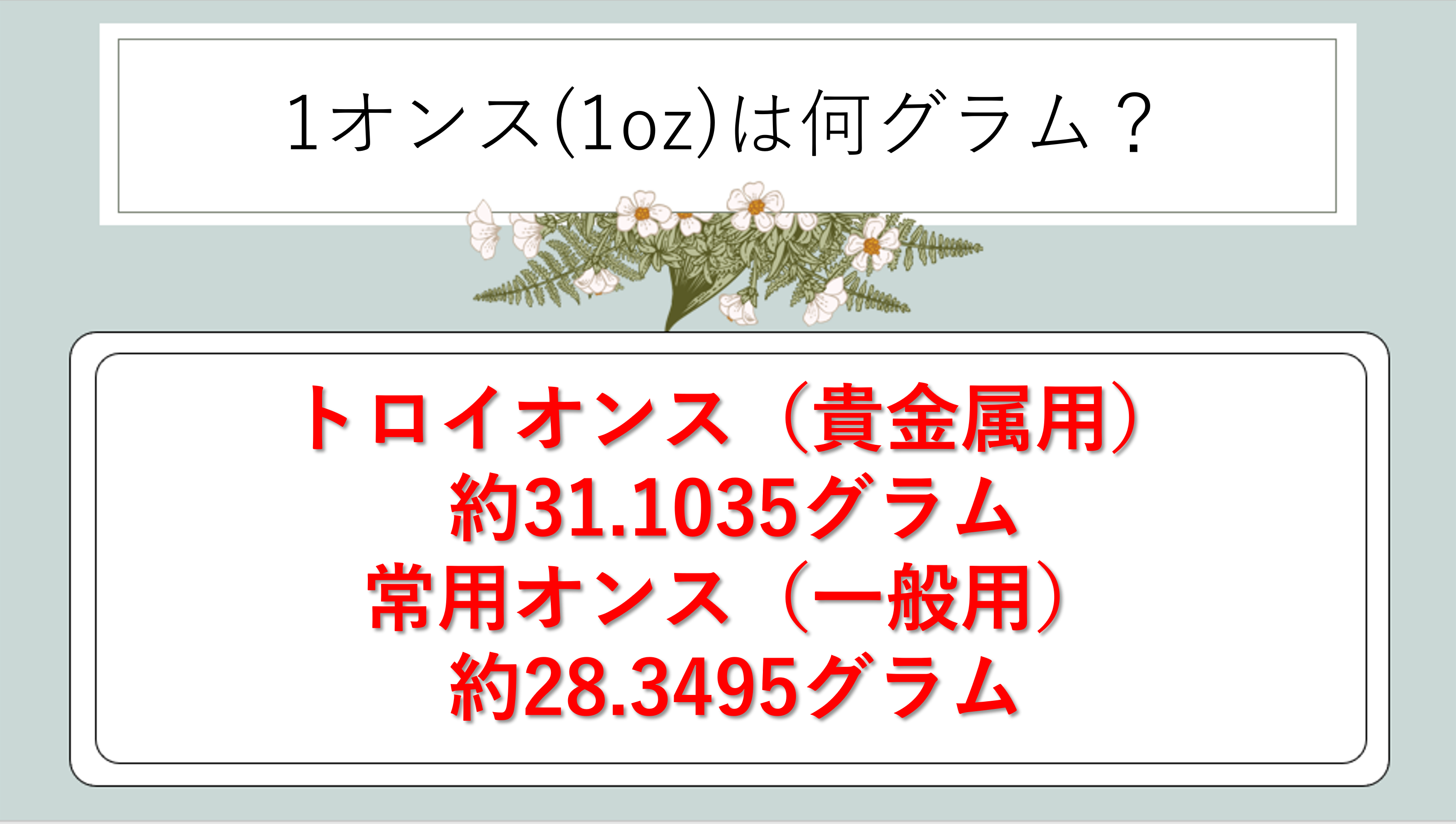 それではまず、1オンスの重さについて結論からお伝えしていきます。