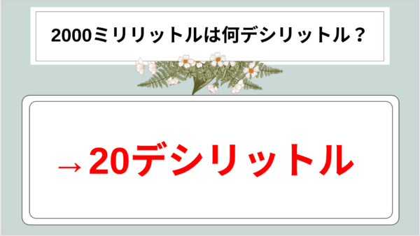 2000ミリリットルは20デシリットル