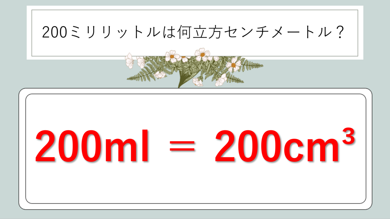 それではまず、200ミリリットルは何立方センチメートルになるのかという結論から解説していきます。