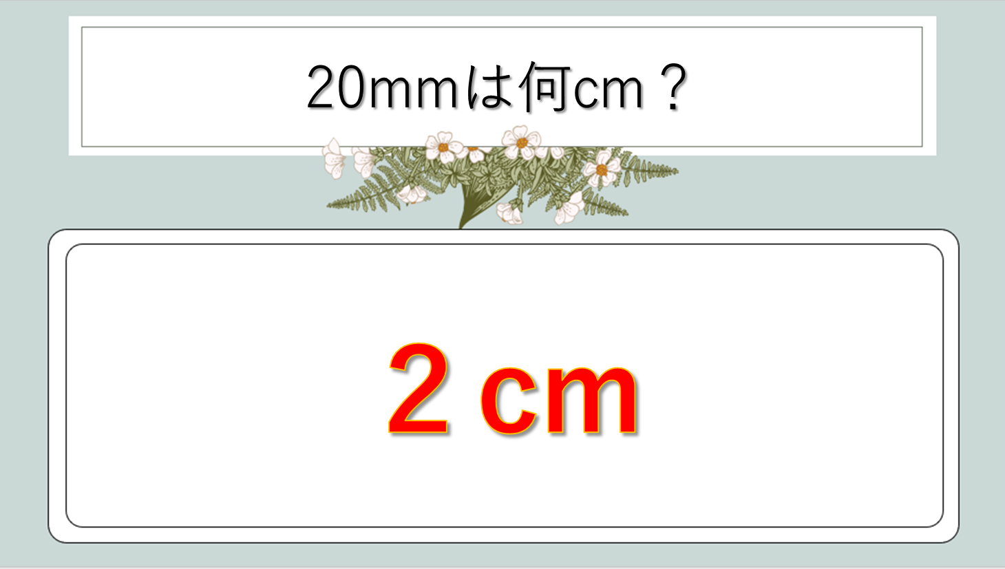 20mm = 2cm(20ミリメートルは2センチメートル)