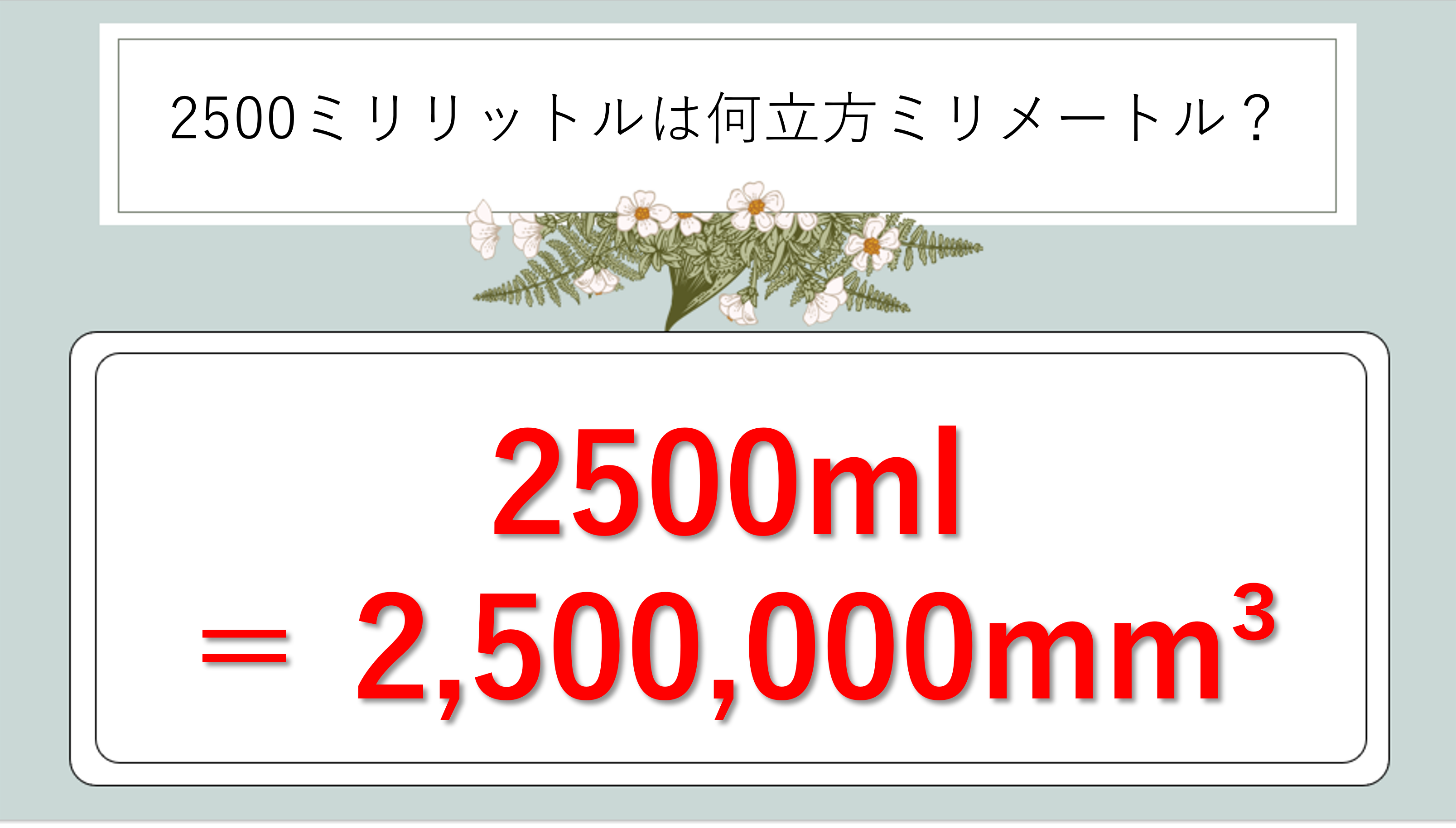 2500mlをcm3(立方センチメートル)に変換すると?