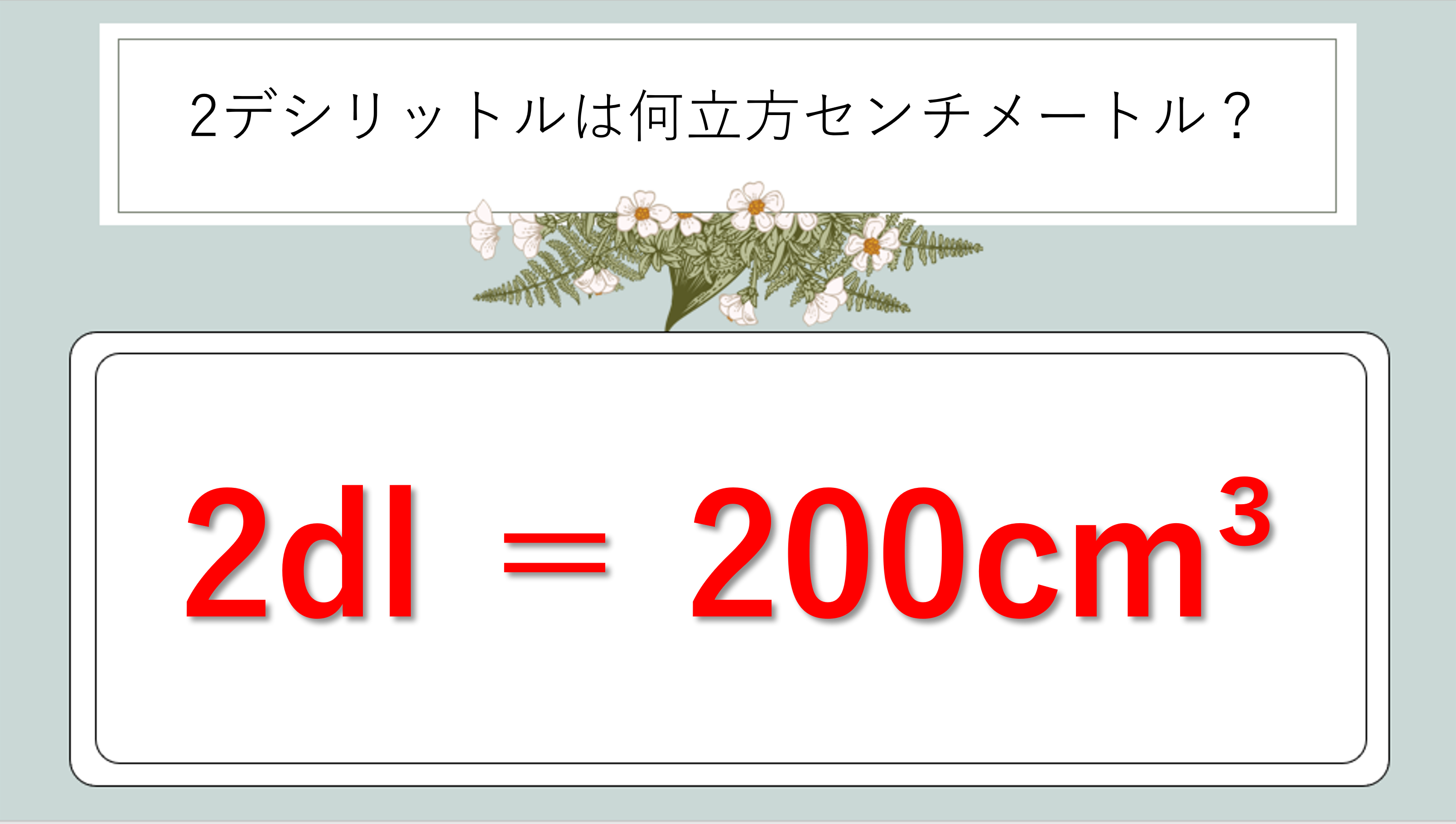 2デシリットルは200立方センチメートル(2dl=200cm³)