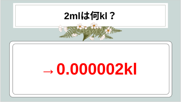 2ml = 2 × 10⁻⁶ kL(指数表記)