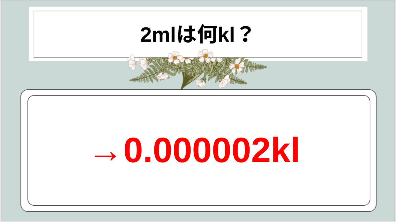 2ml = 2 × 10⁻⁶ kL(指数表記)