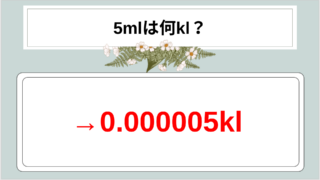 5ml = 小さじ1杯 = 0.000005kL