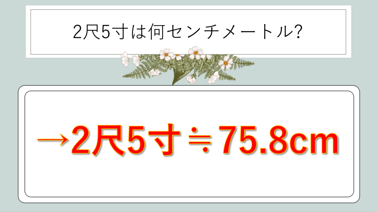 2尺5寸は約75.8cm(75.75センチメートル)です【結論】