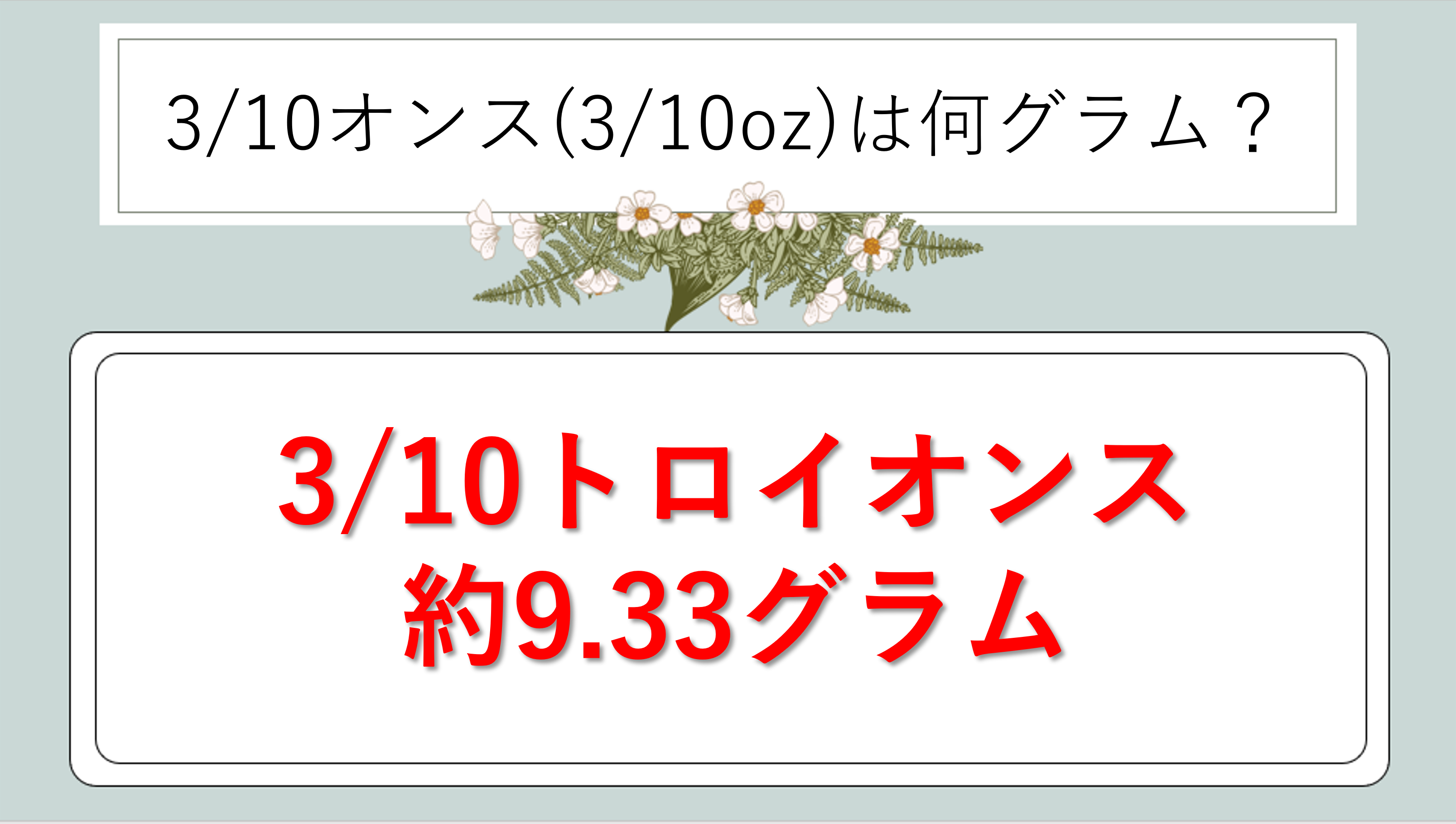 3/10オンスは約9.33グラム(トロイオンス基準)