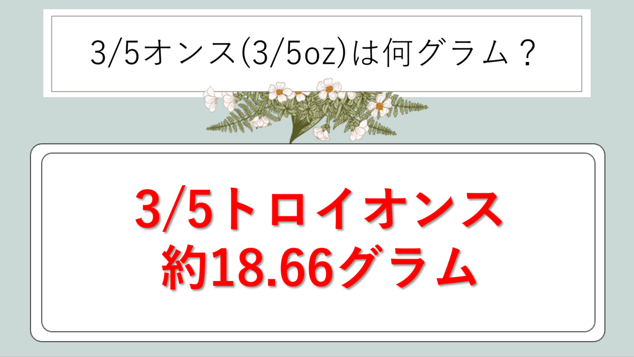 3/5オンスは約18.66グラム(トロイオンス基準)