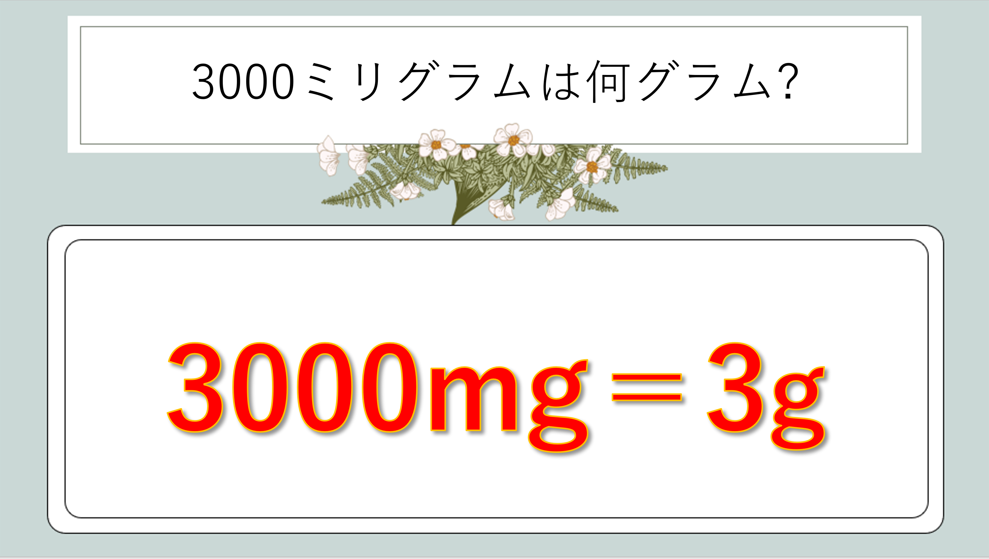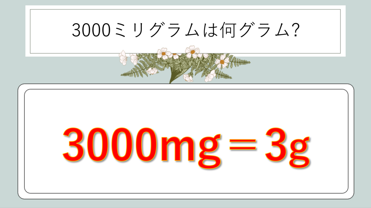 | 3000mgは何gか | 3g | 3000÷1000 |