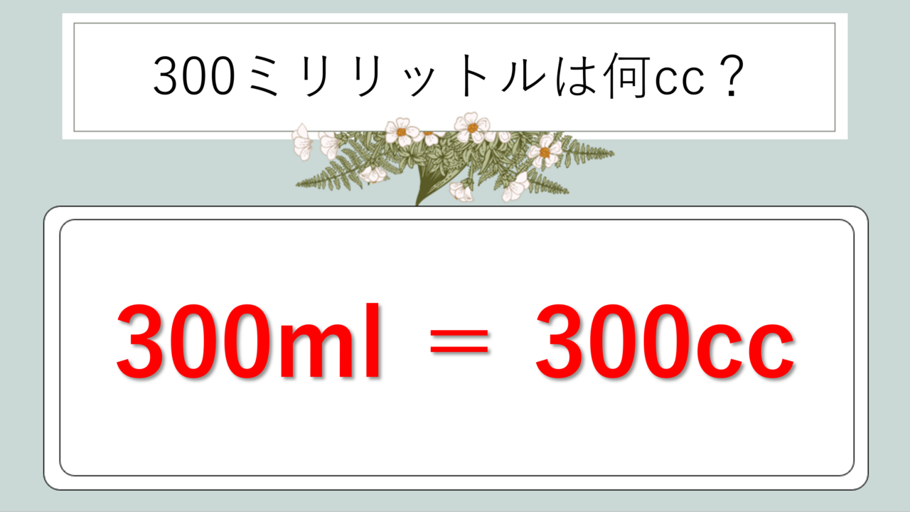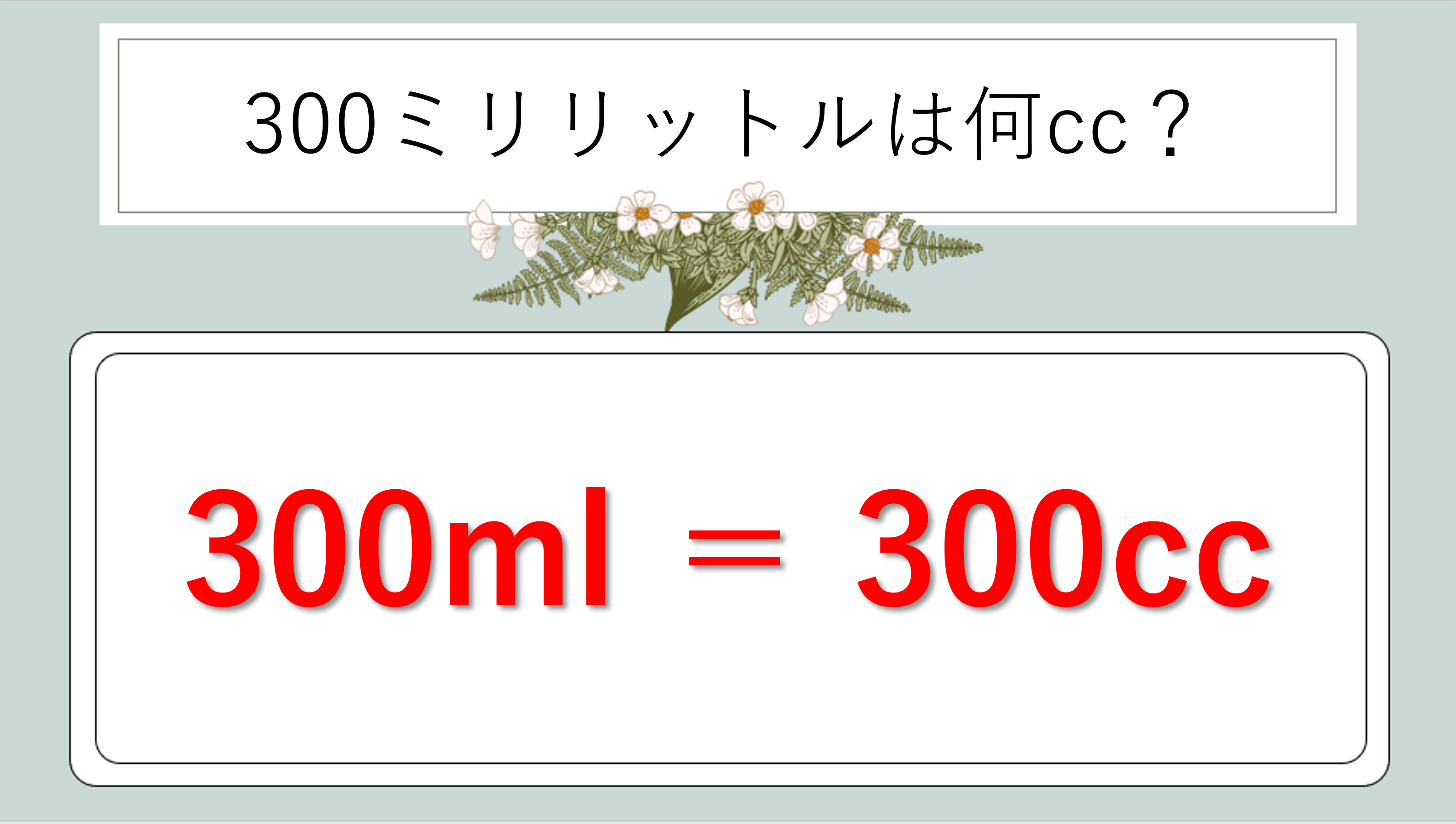 結論から申し上げると、300ミリリットル(300ml)は、そのまま300ccです。