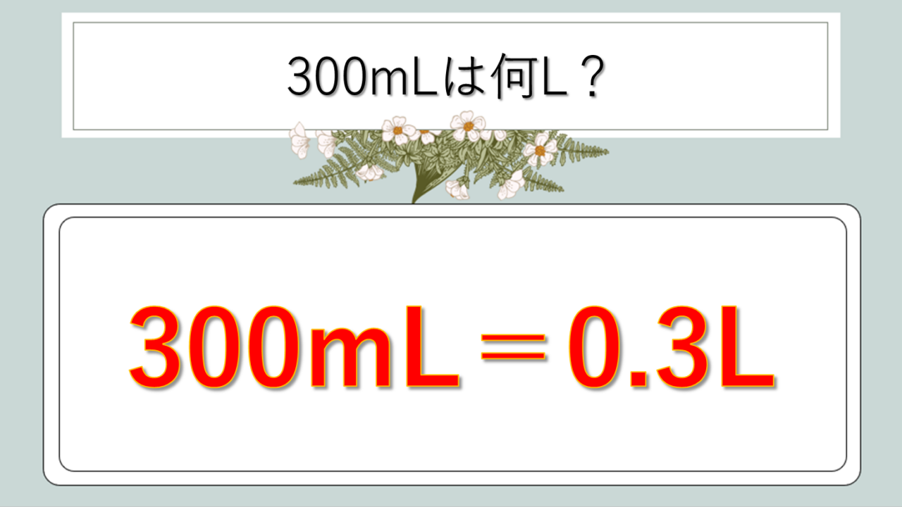 300ミリリットルは0.3リットル(300ml=0.3L)