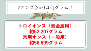 一方、食品や日用品などの一般的な重量を表す場合は、常用オンスが使われ、3オンス=約85.0485gとなります。トロイオンスと常用オンスでは約8.26gの差があるため、取り扱う製品がどちらのオンスを使っているか確認することが大切でしょう。