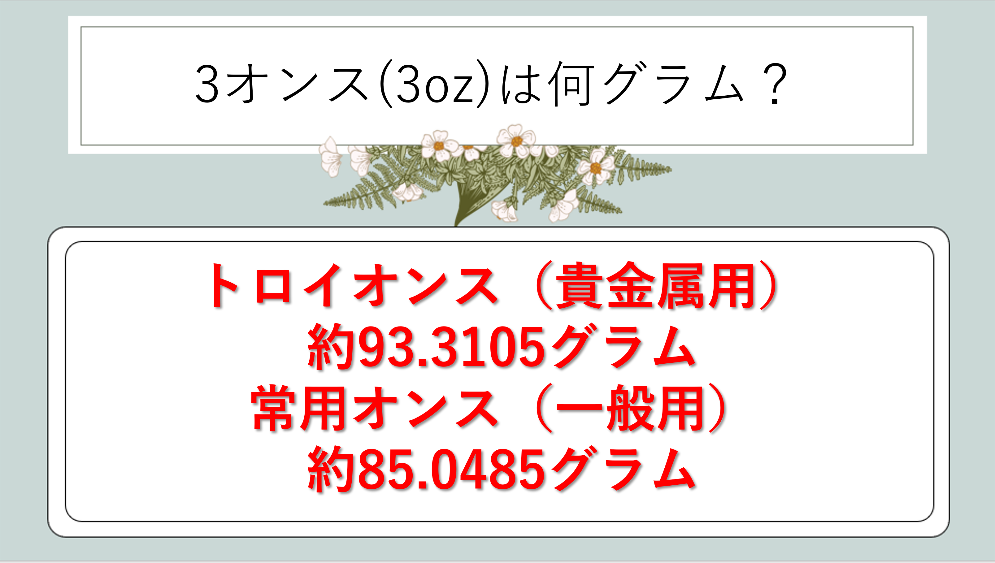 続いては、3オンスとグラムの換算方法と、実用的なコツを確認していきます。