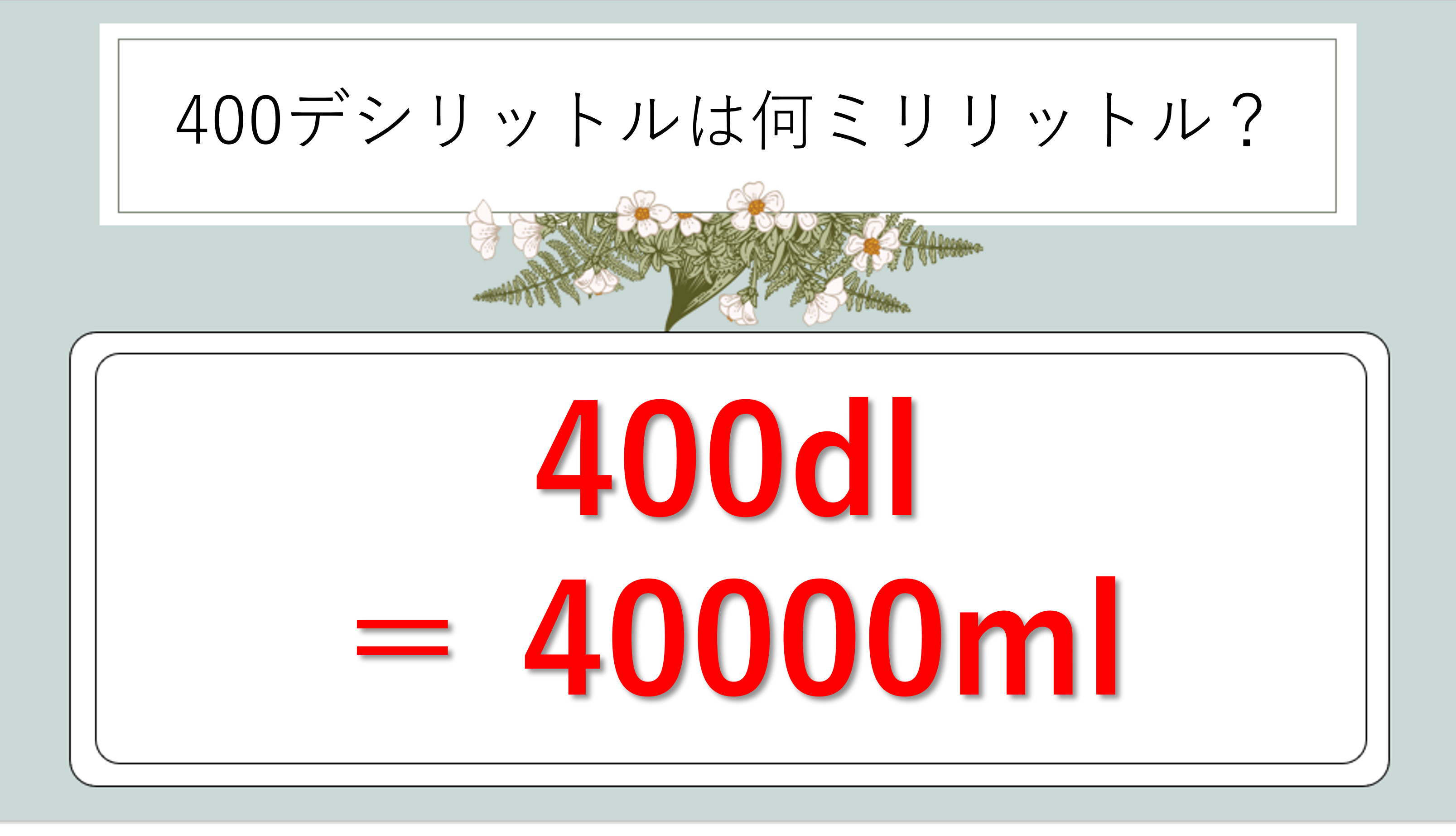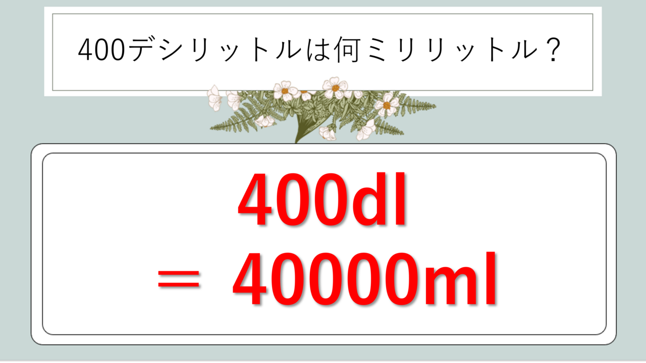 400dl=40000ml、ぜひしっかり覚えておいてくださいね!