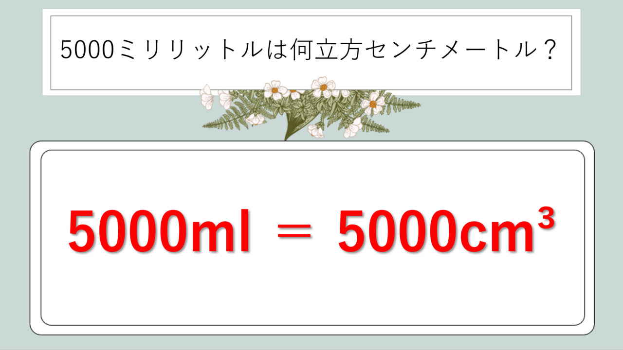 念のため、5000mlをcm3に変換する式も確認しておきましょう。
