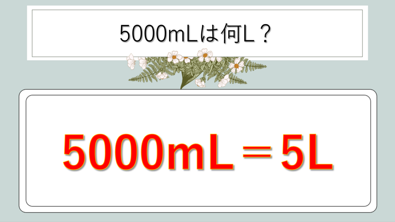 5000ml ÷ 1000 = 5Lもしくは