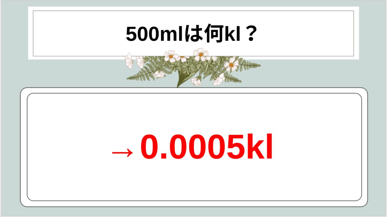 続いては、500ミリリットルとキロリットルの関係を覚えやすくするコツをご紹介していきます。