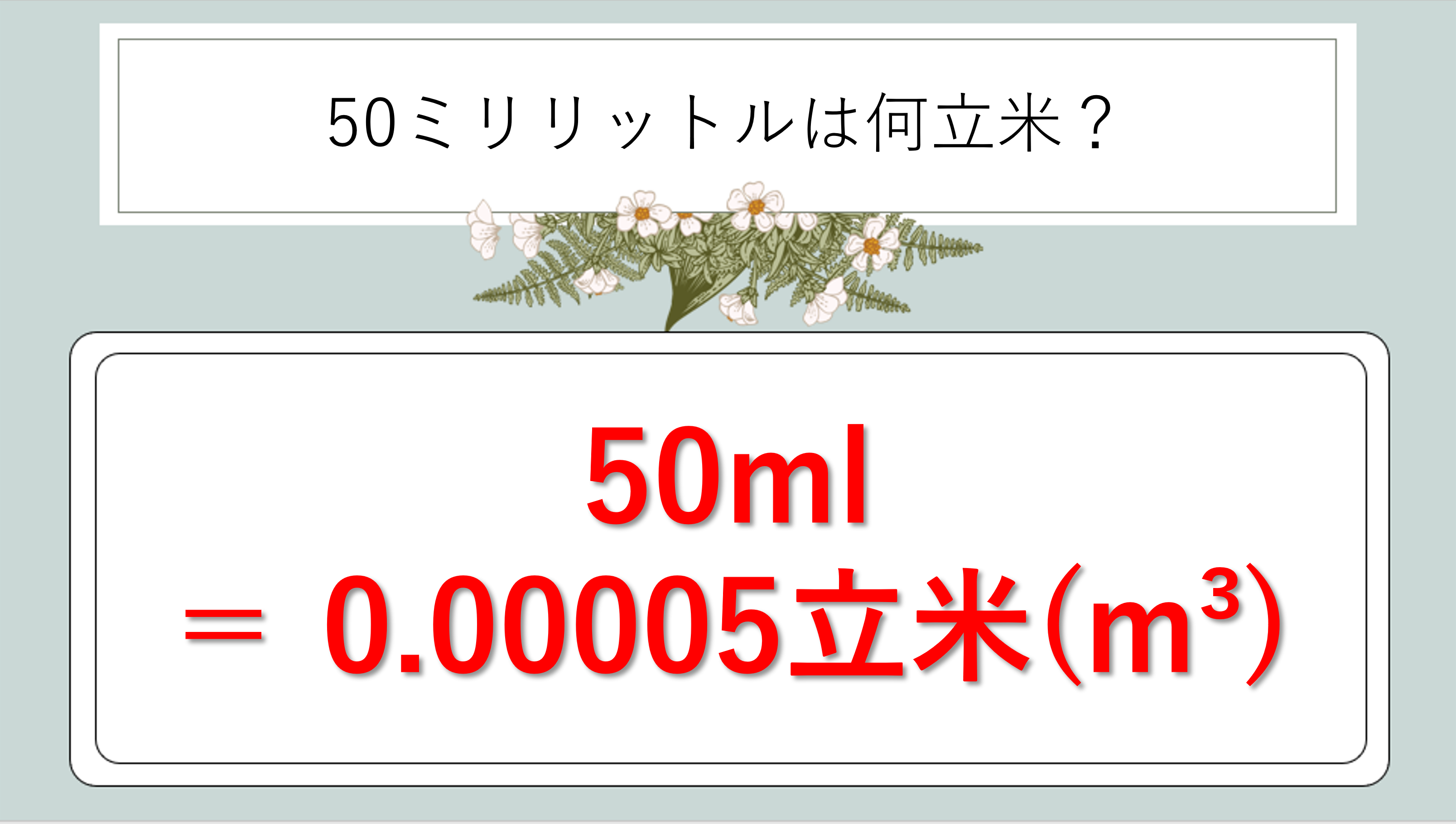 それではまず、50ミリリットル(ml)が何立米(m3)になるのかという結論について解説していきます。