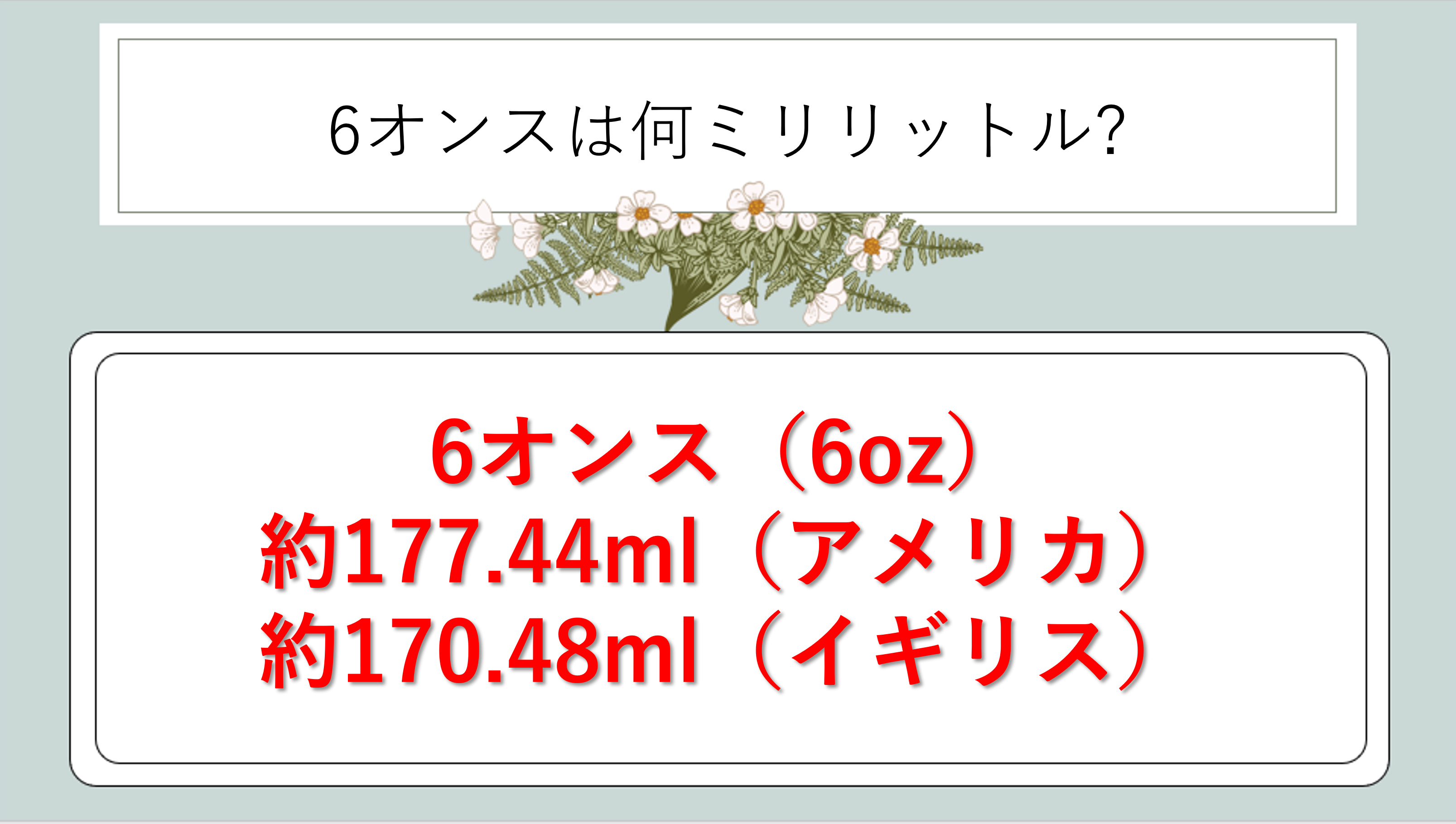 6 oz(英) = 170.4786 ml ≒ 170 ml