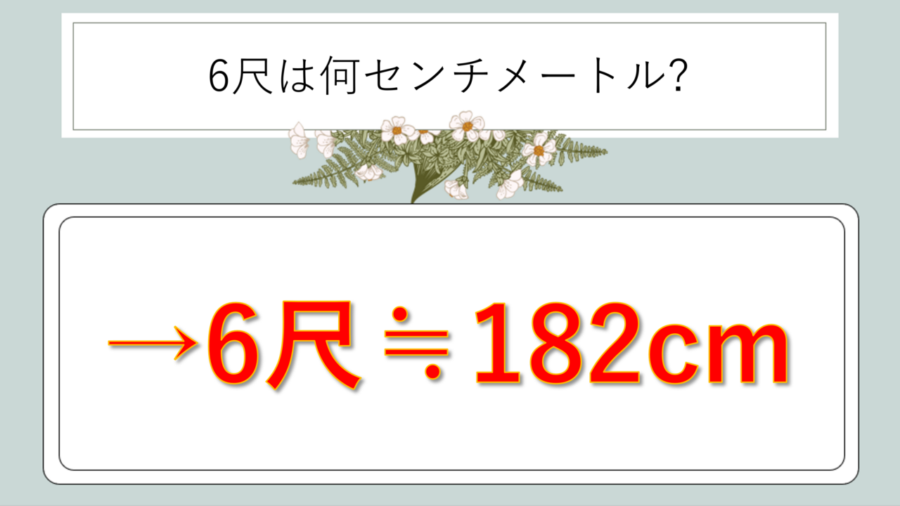 6尺 = 約182センチメートル(正確には181.818…cm)