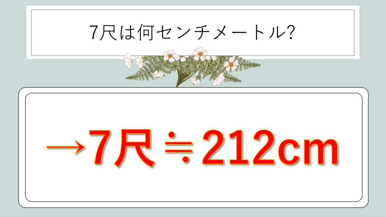 7尺 = 約212センチメートル(正確には212.121…cm)
